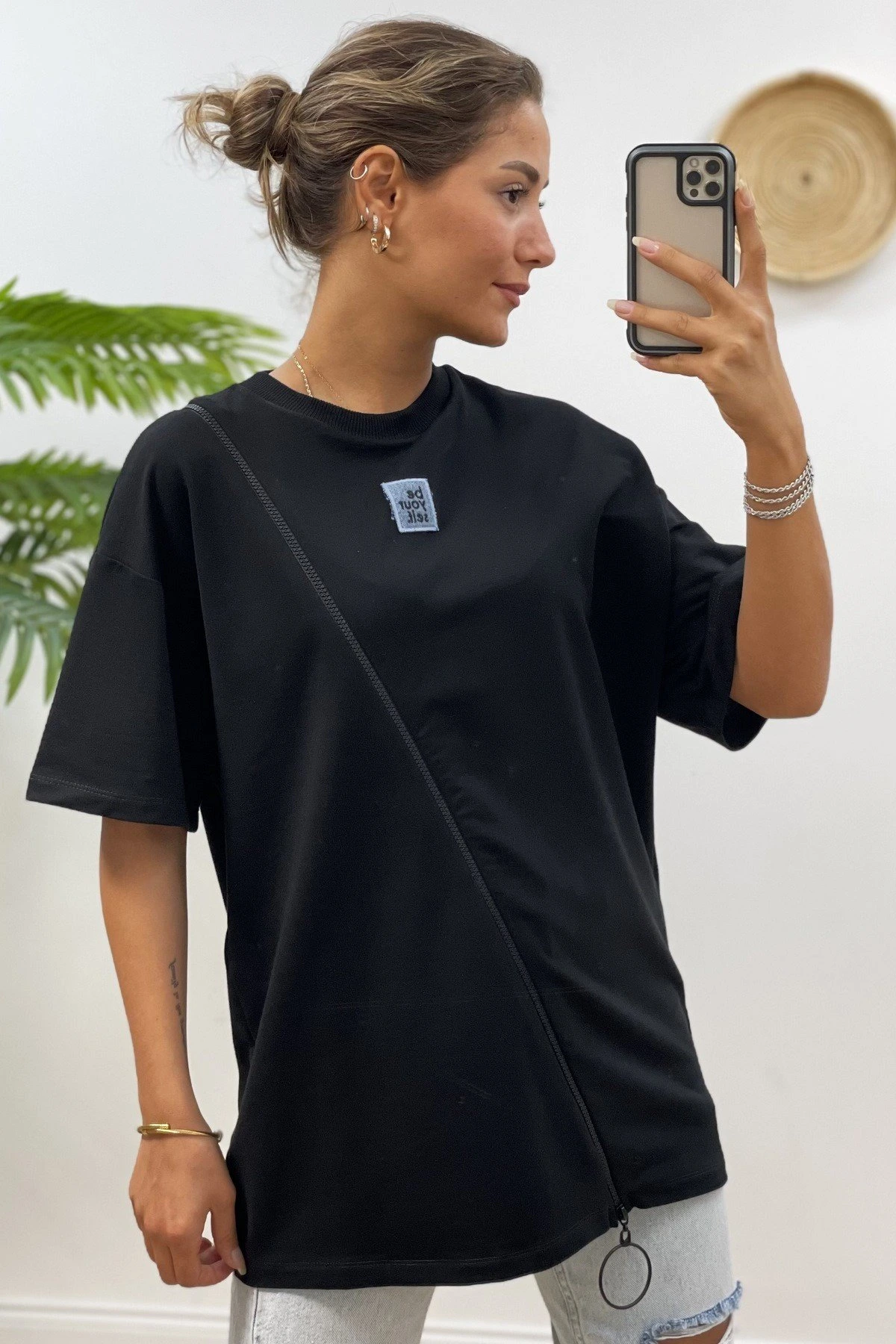 ÖN FERMUARLI WE YOUR SELF PAMUK TİŞÖRT – SİYAH