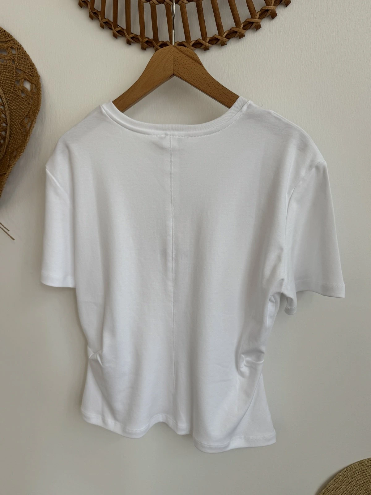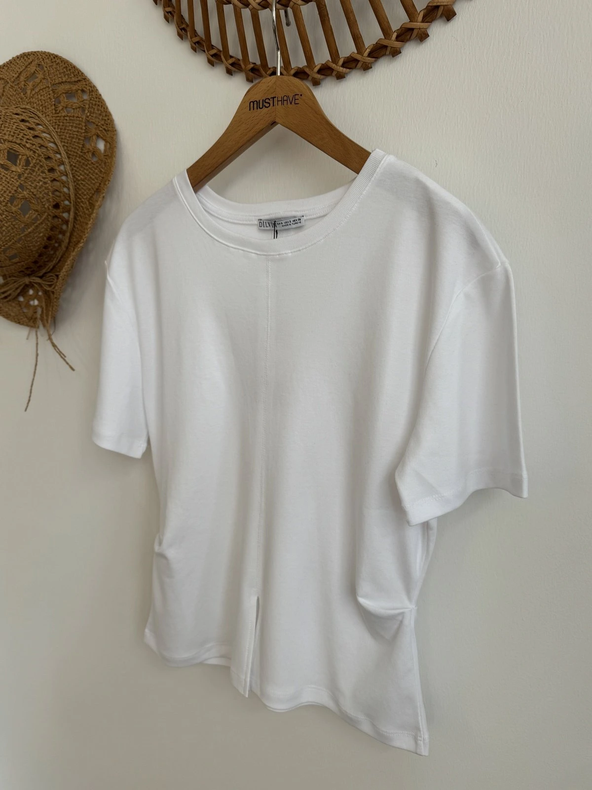 ÖN YIRTMAÇ YAN PİLİ DETAY PAMUK TİŞÖRT – BEYAZ
