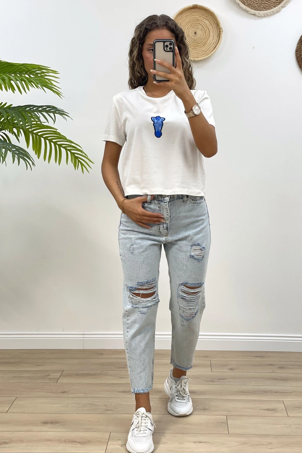 ÖN ZEBRA NAKIŞ FİGÜR TİŞÖRT – EKRU
