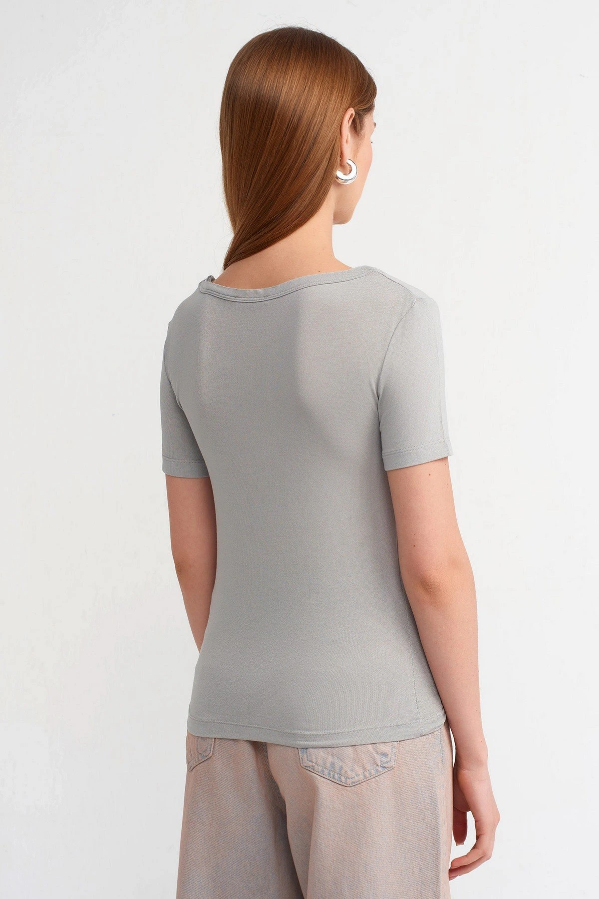 OVAL YAKA VİSKON LİKRALI BASİC TİŞÖRT – A.GRİ