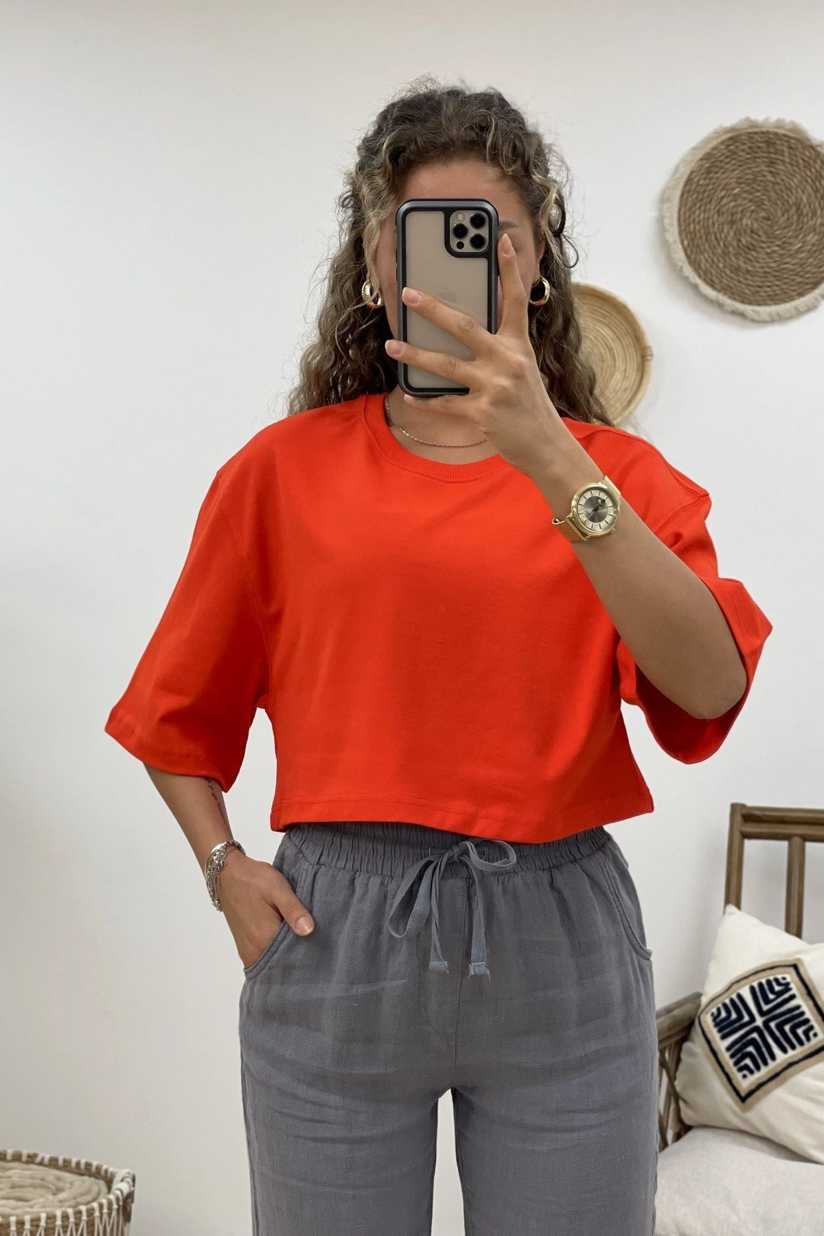 BİSİKLET YAKA SALAŞ TİŞÖRT – NAR ÇİÇEĞİ