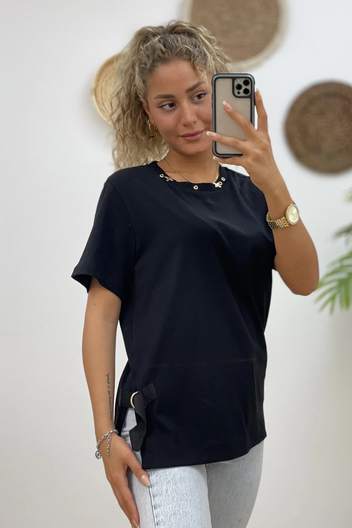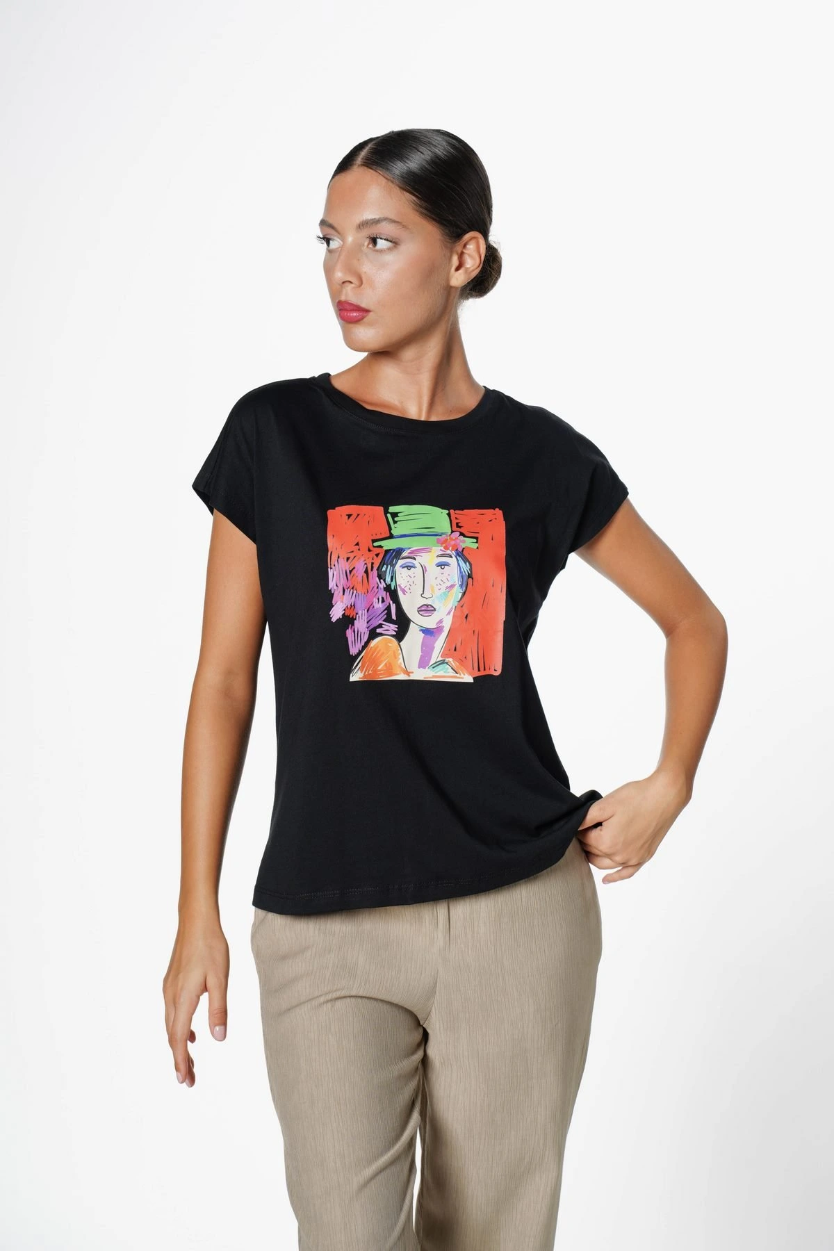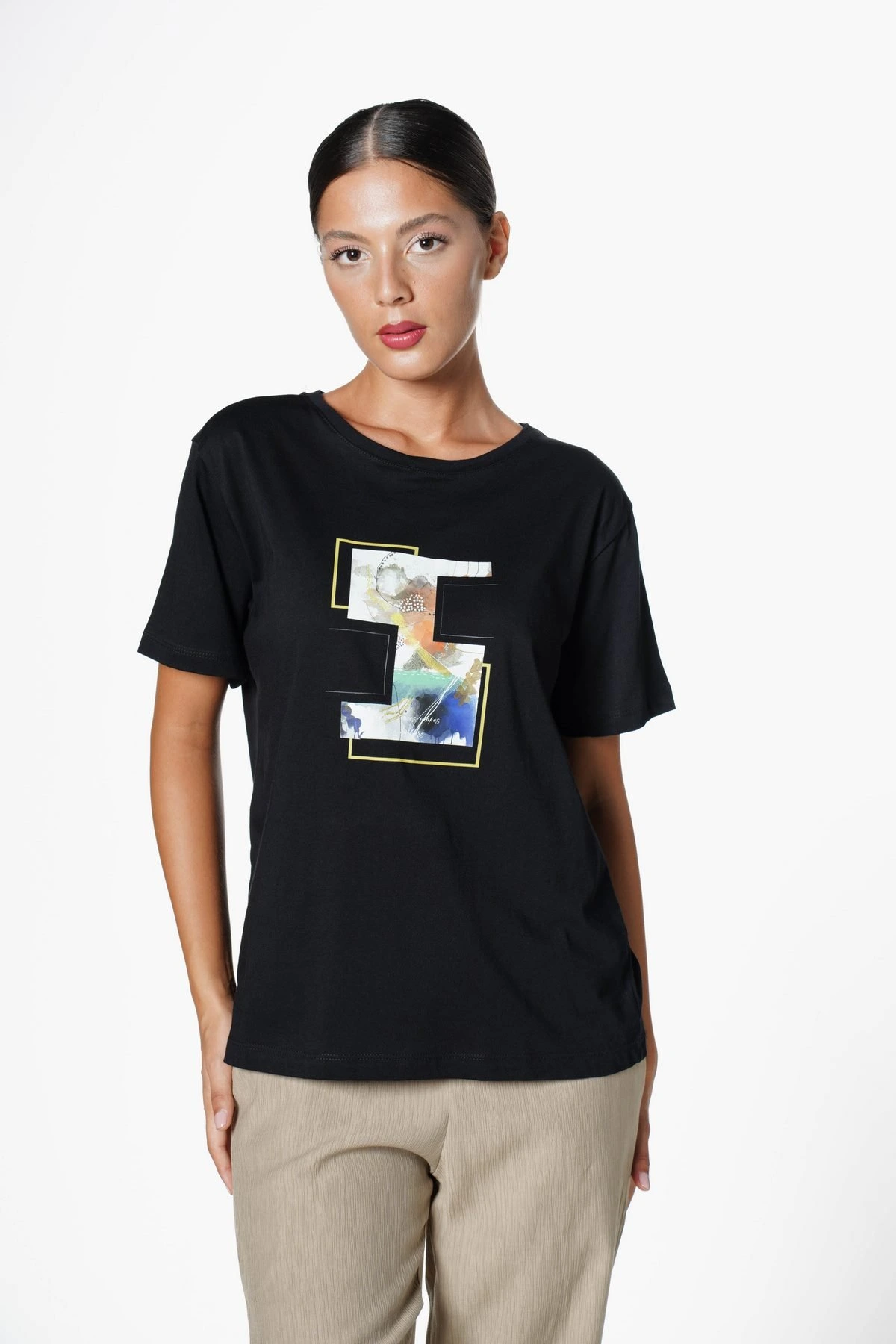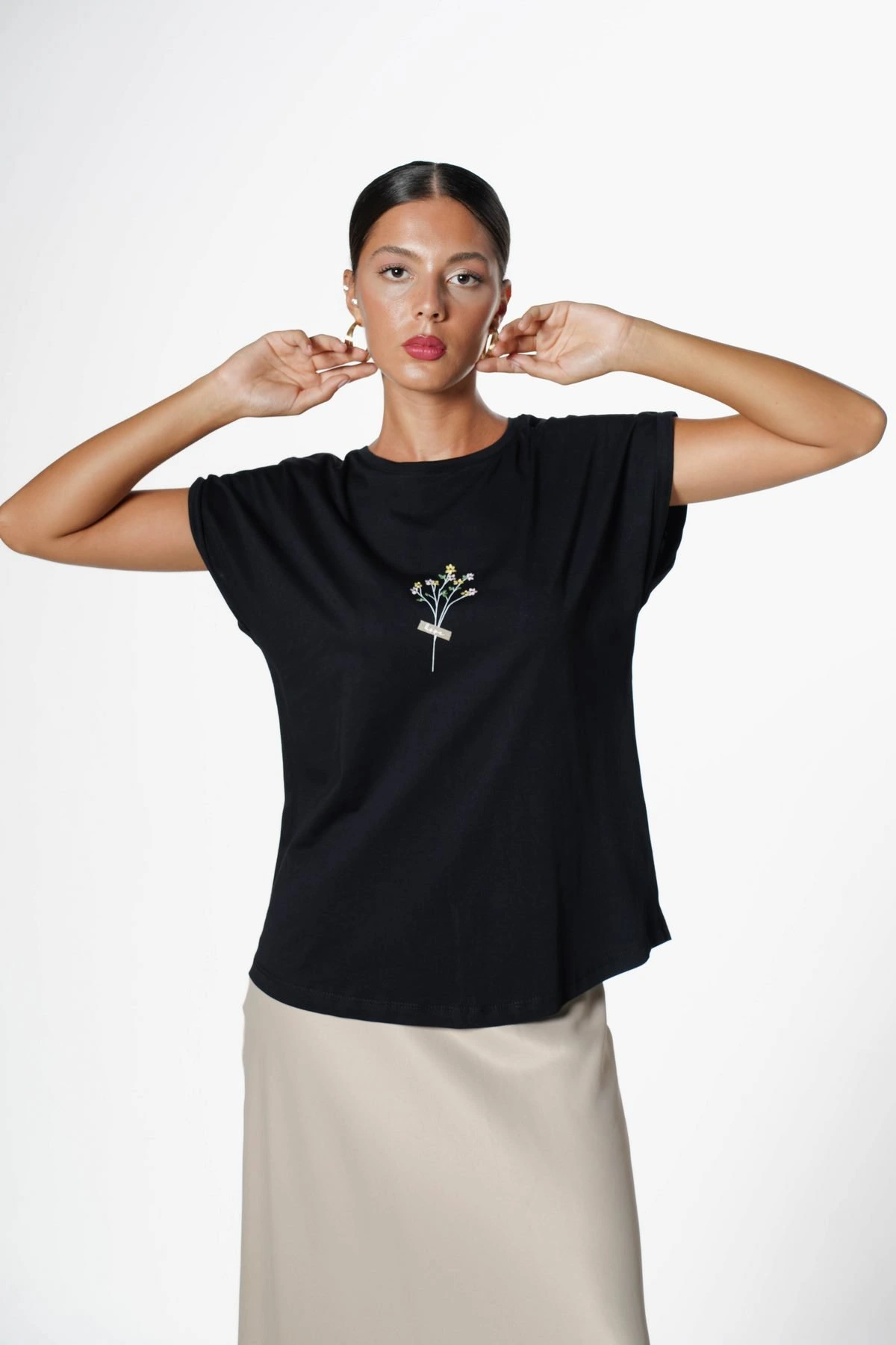ÖN KABARTMA BASKI SALAŞ TİŞÖRT – SİYAH
