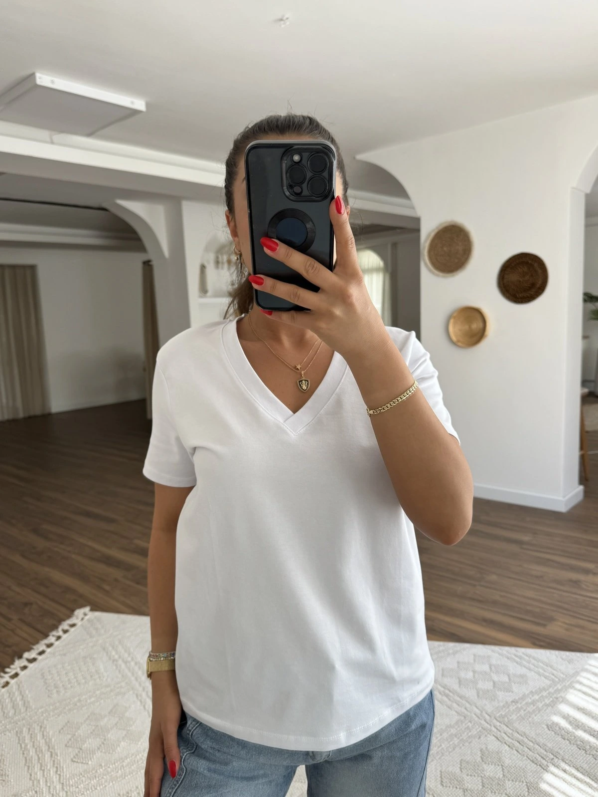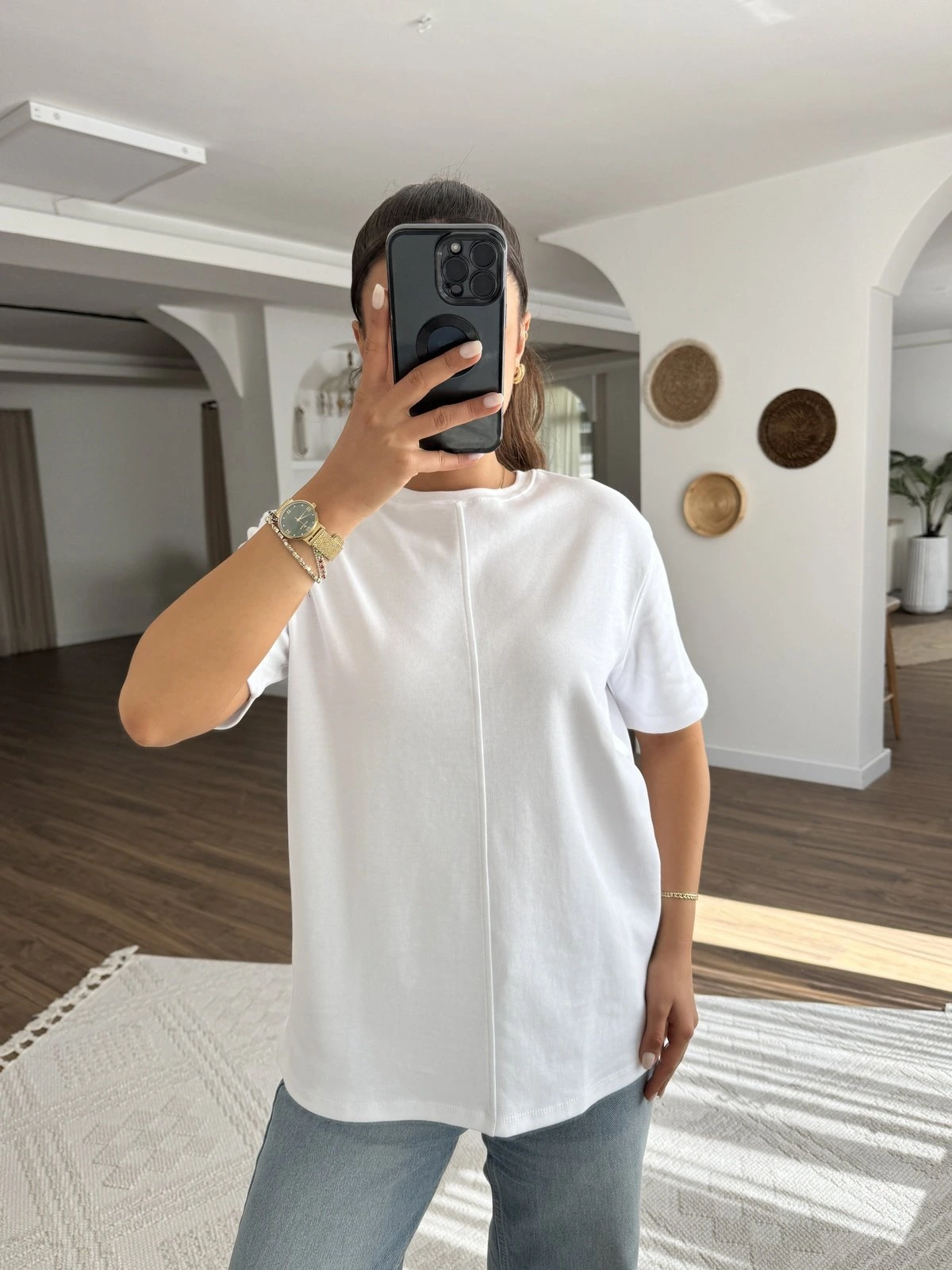 YAKALI GİZLİ FERMUAR ÇIKMA KOL PAMUK TİŞÖRT – SİYAH