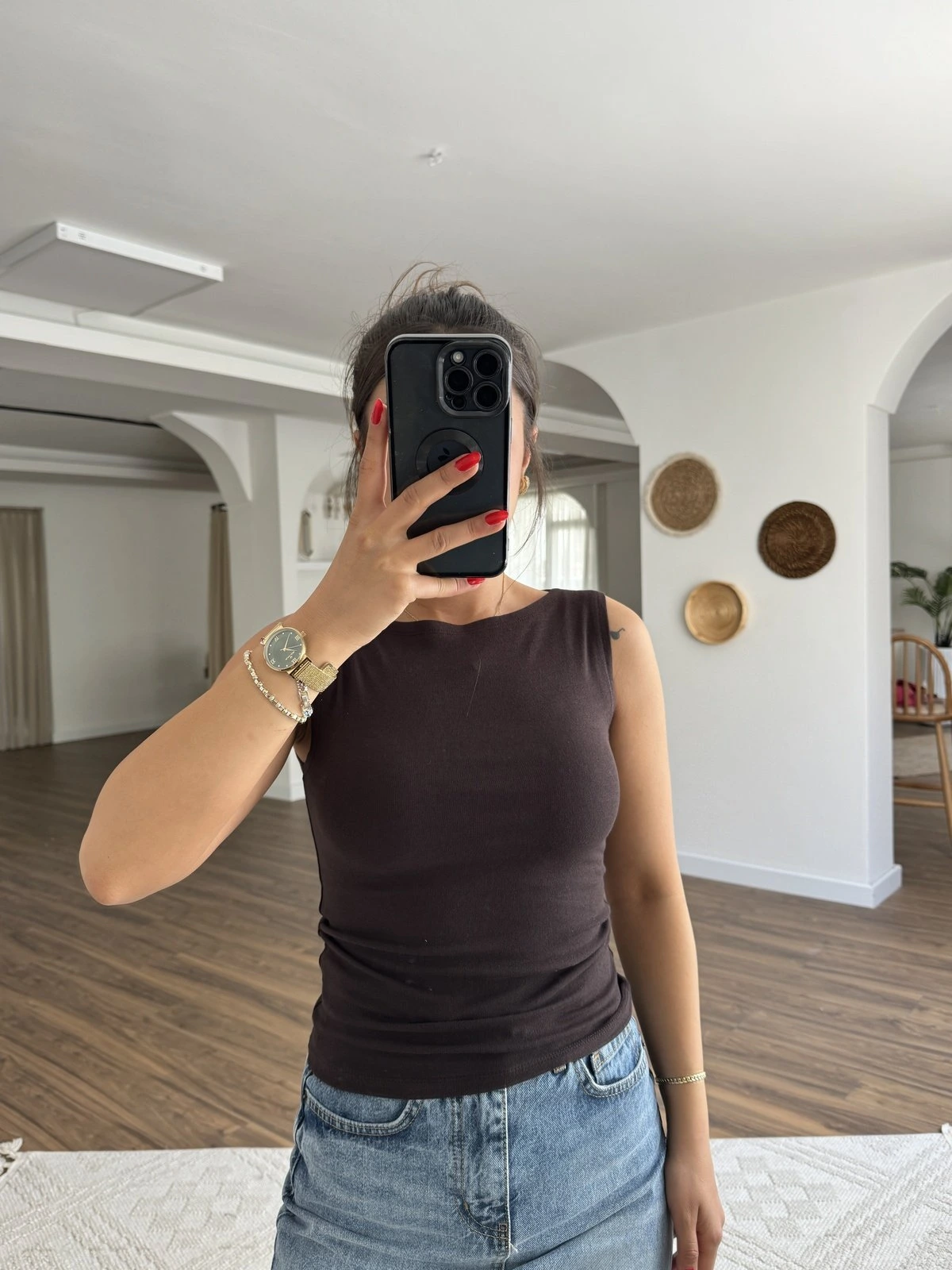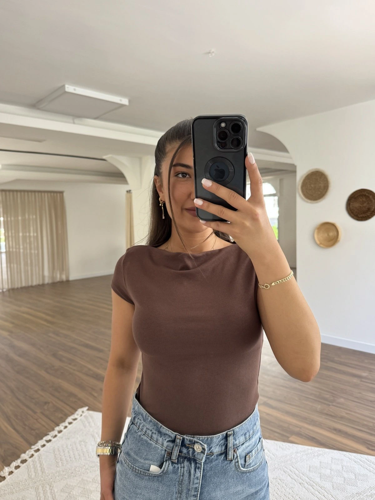 YAKALI GİZLİ FERMUAR SIFIR KOL PAMUK TİŞÖRT – ACI KAHVE