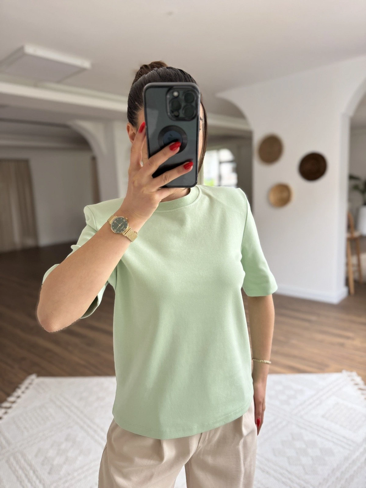 V YAKA ETİKET DETAY DOKULU KETEN TİŞÖRT – VİZON