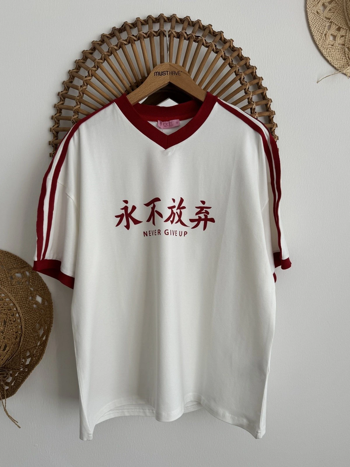 V YAKA ETİKET DETAY DOKULU KETEN TİŞÖRT – BORDO
