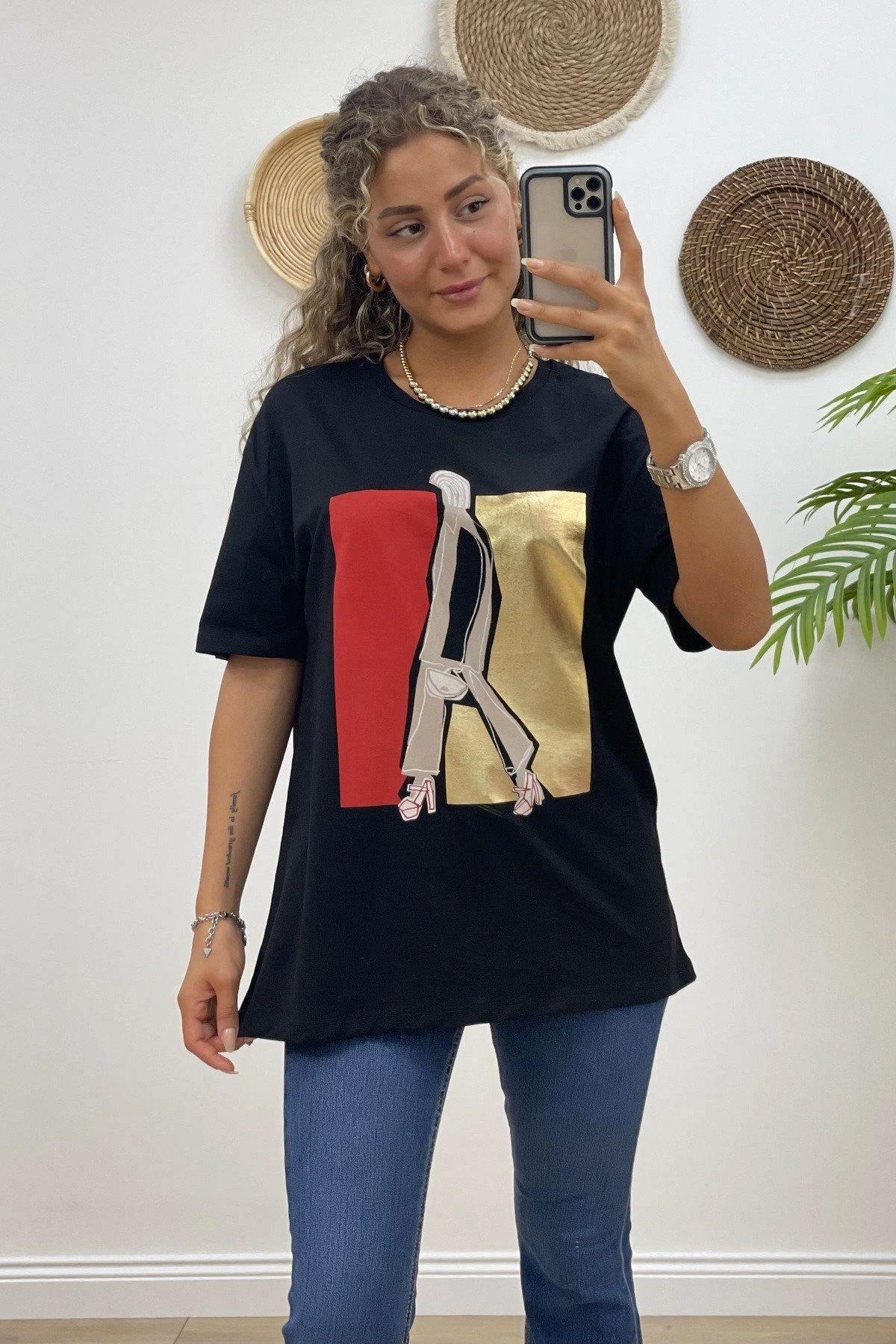 ÖN KABARTMA BASKI SALAŞ TİŞÖRT – SİYAH