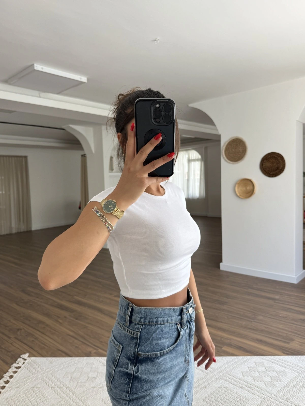 PAMUK MODAL KARIŞIMLI KISA TİŞÖRT – BEYAZ