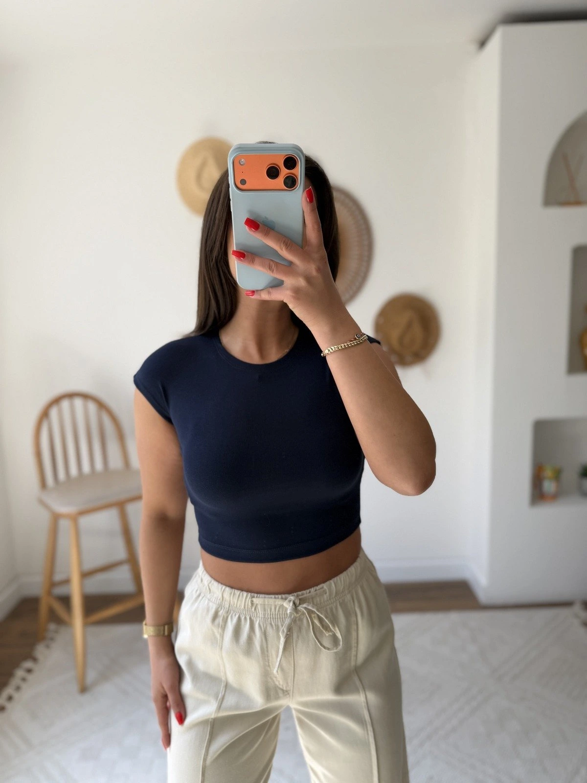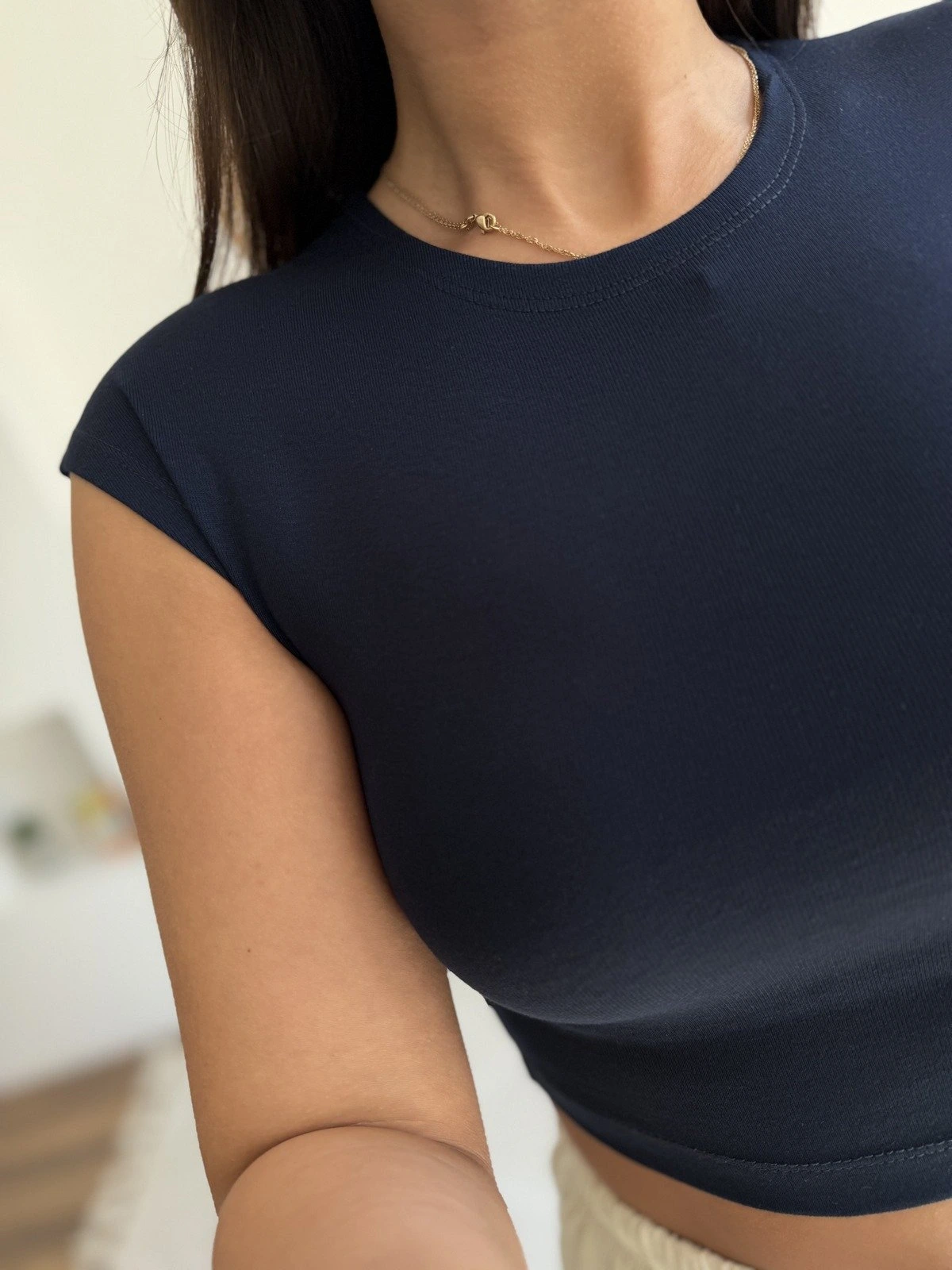 PAMUK MODAL KARIŞIMLI KISA TİŞÖRT – LACİVERT