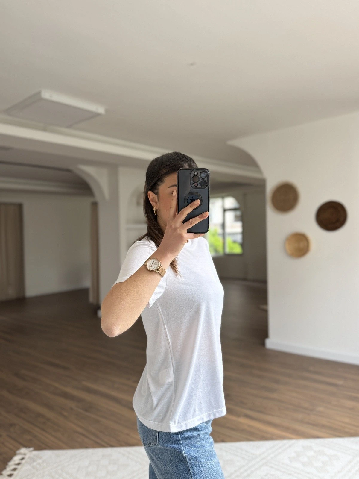 SIFIR YAKA İNCE VİSKON BASİC TİŞÖRT – BEYAZ