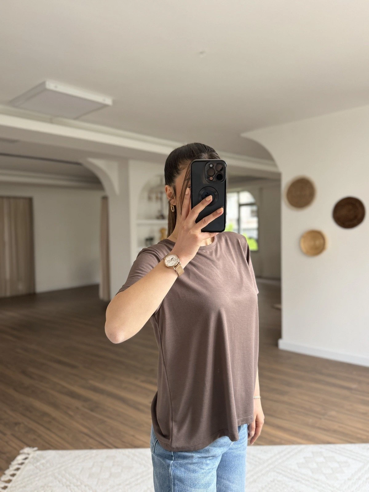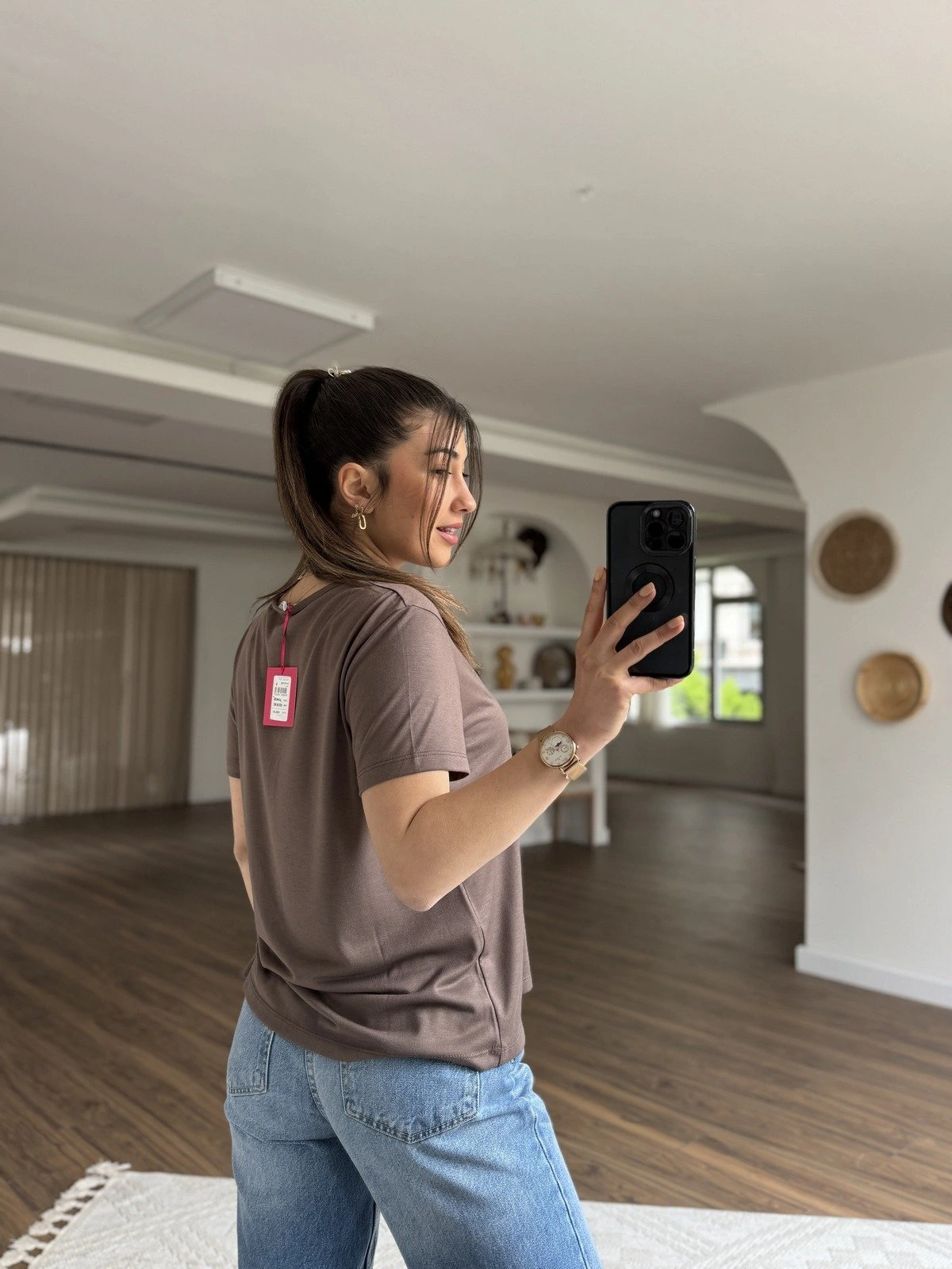 SIFIR YAKA İNCE VİSKON BASİC TİŞÖRT – VİZON