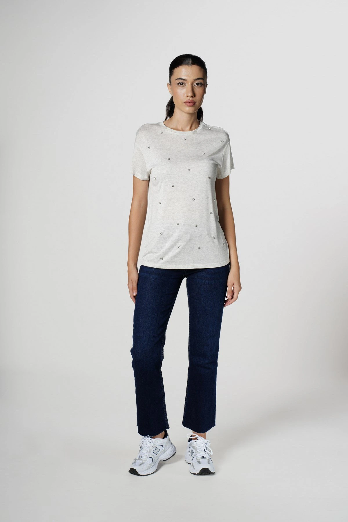 TAŞLI BİSİKLET YAKA KISA KOL TİŞÖRT – A.GRİ