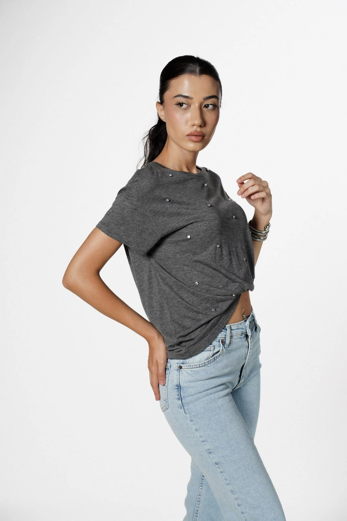 TAŞLI BİSİKLET YAKA KISA KOL TİŞÖRT – ANTRASİT