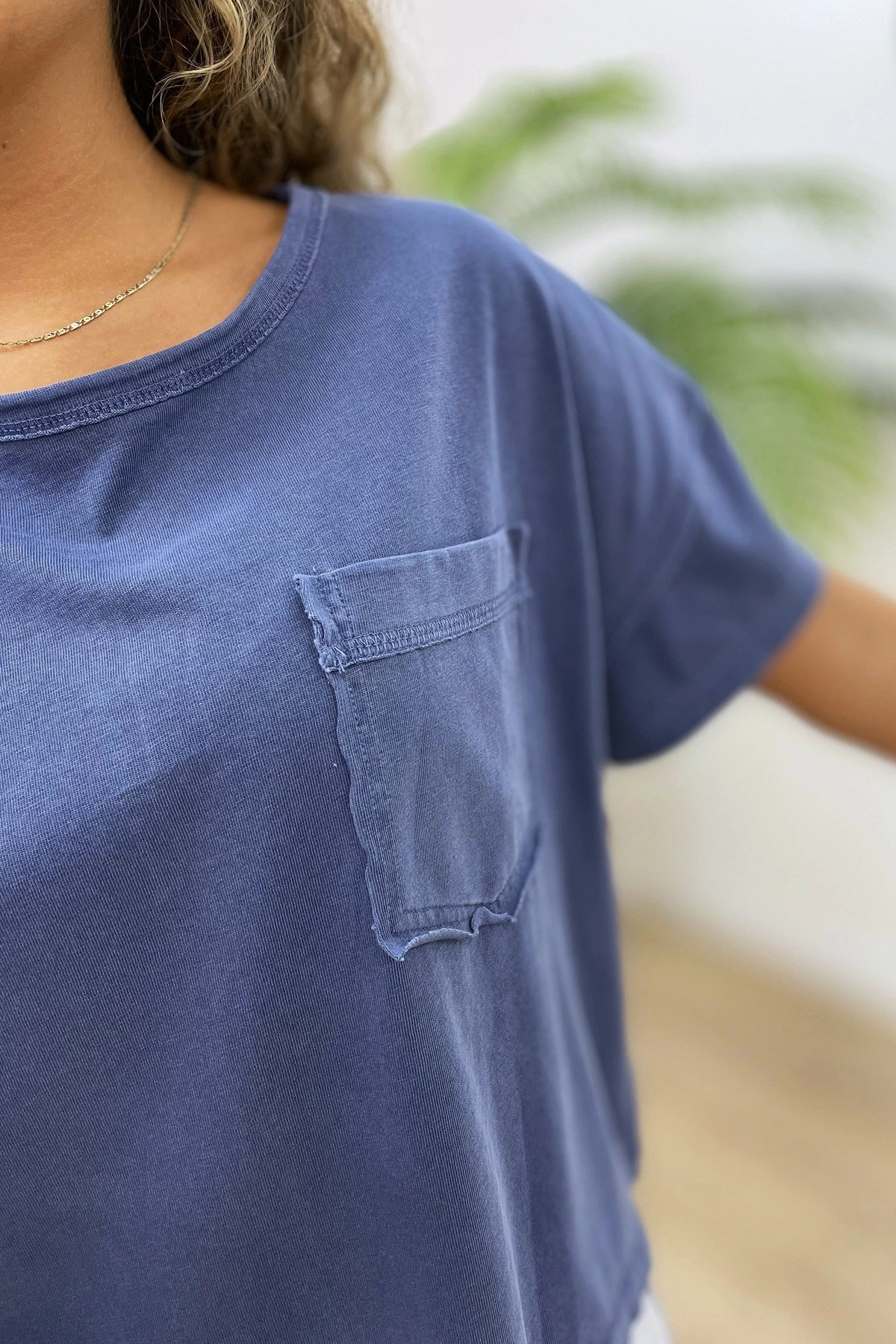 TEK CEP YIKAMALI TİŞÖRT – İNDİGO