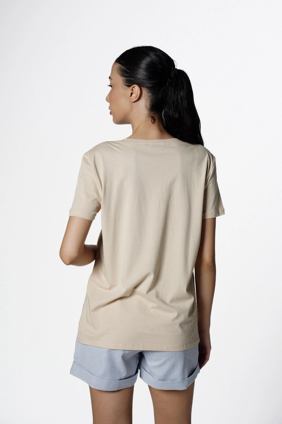 V YAKA BASİC TİŞÖRT – AÇIK BEJ
