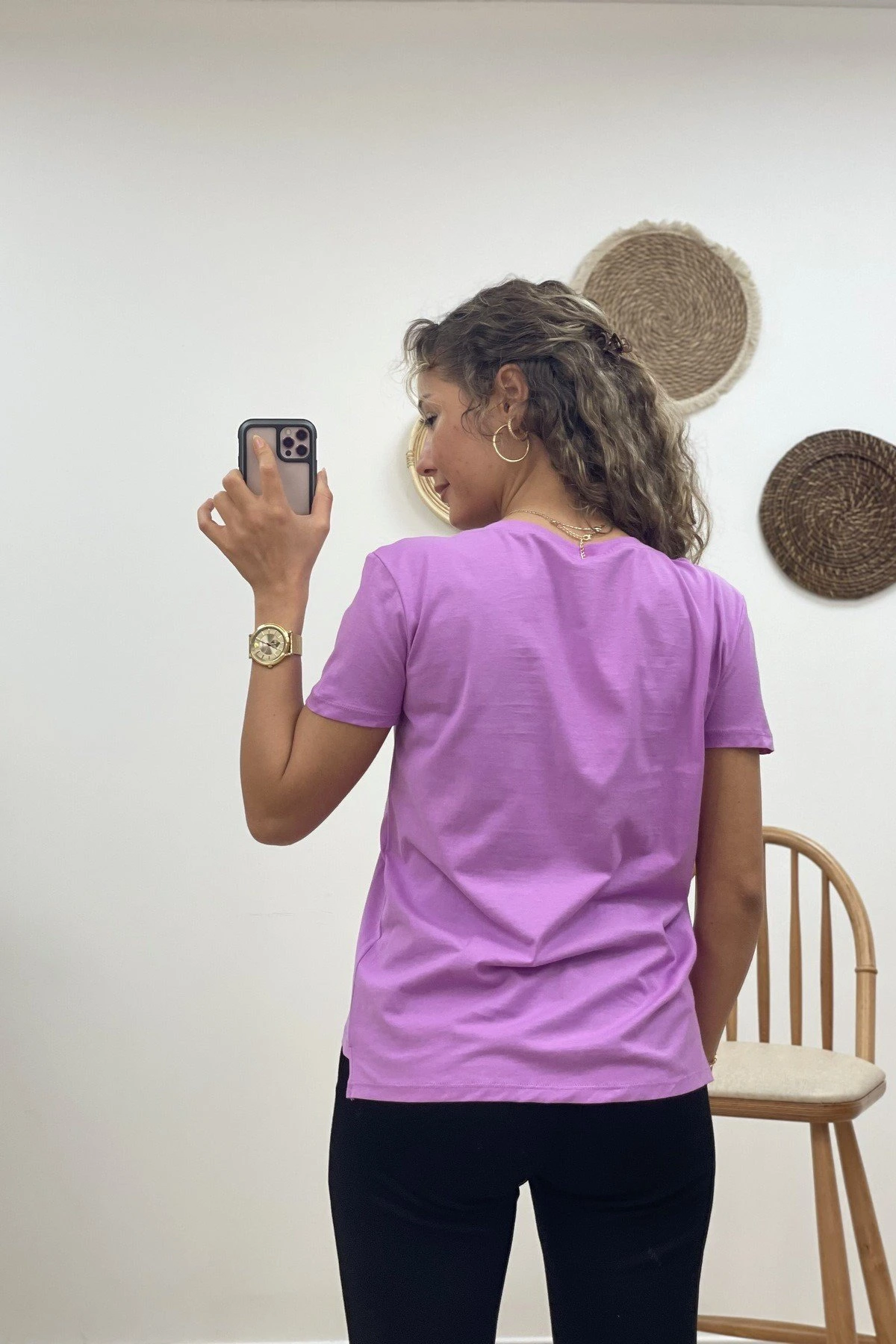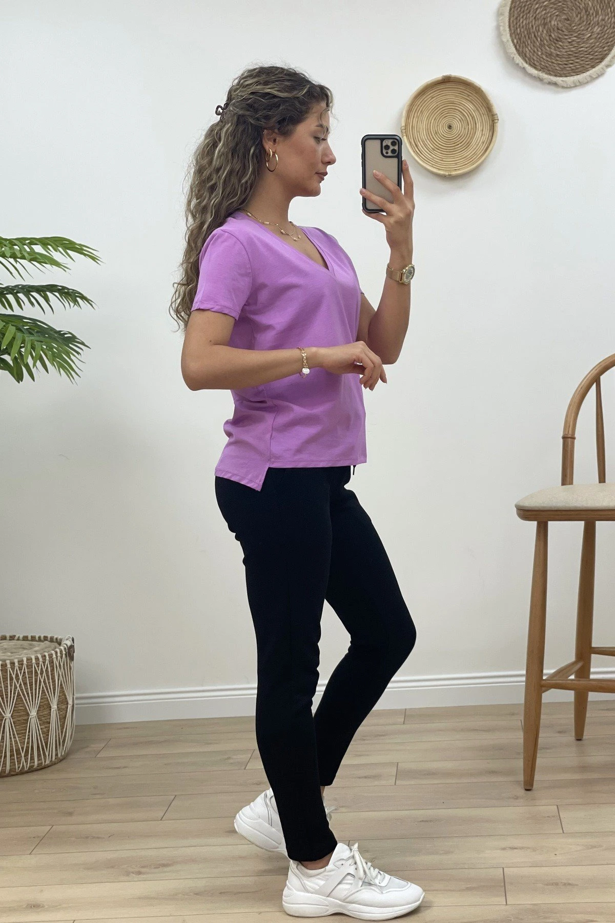 V YAKA BASİC TİŞÖRT – LİLA