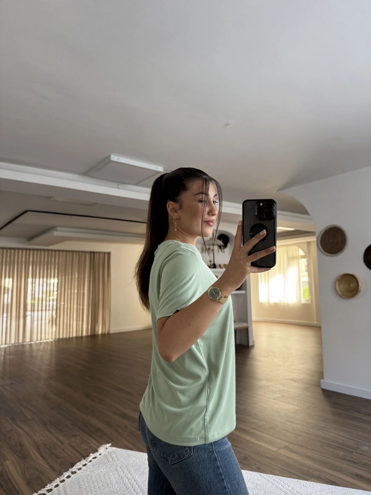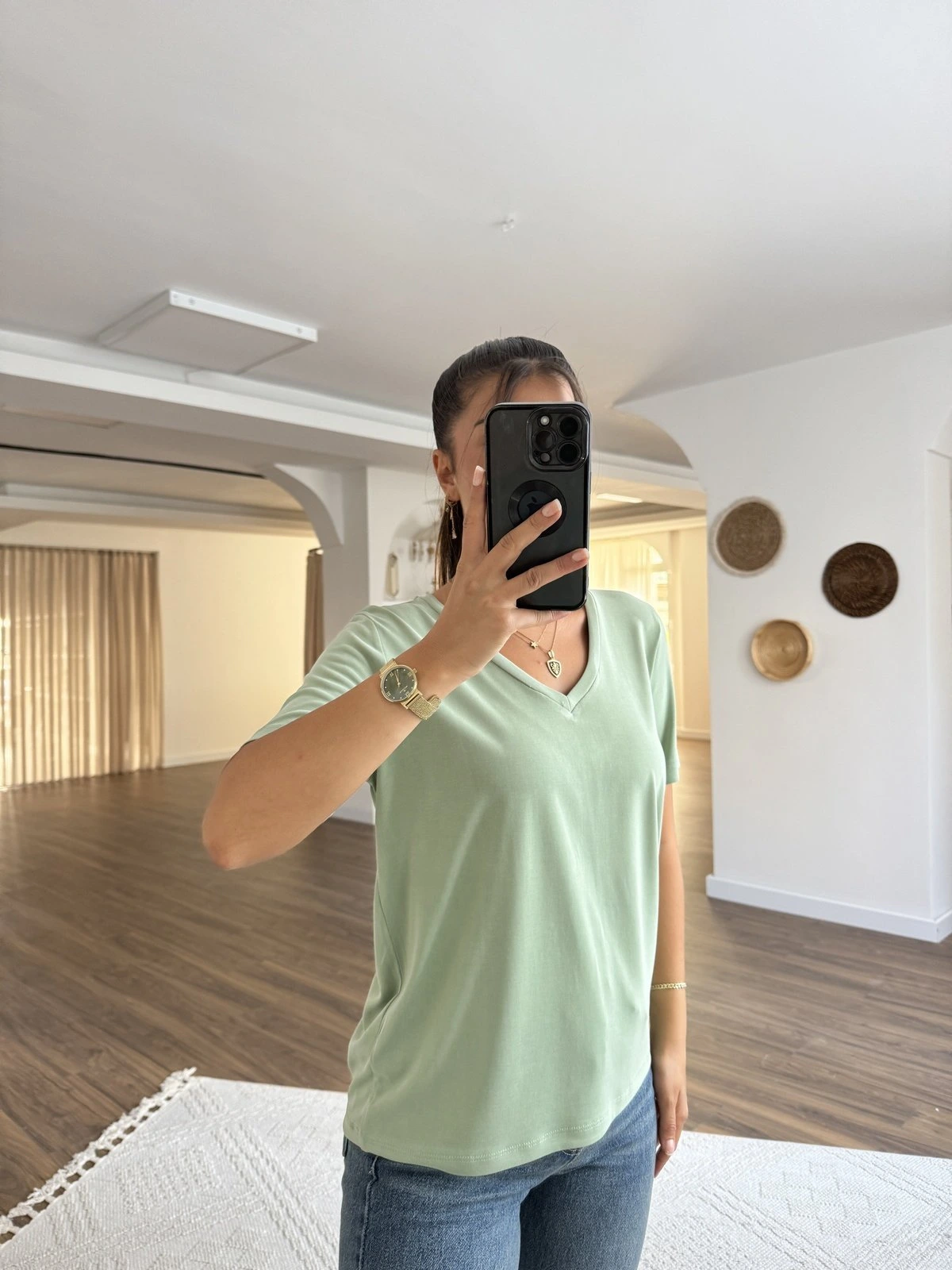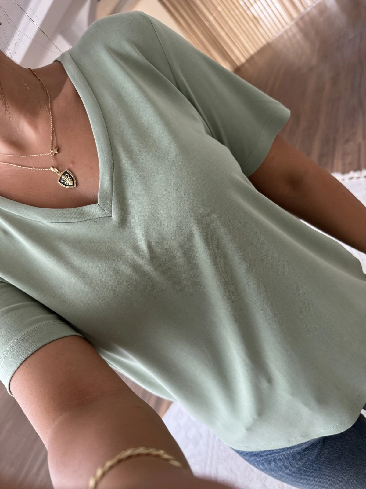 V YAKA İNCE MODAL TİŞÖRT – AÇIK YEŞİL