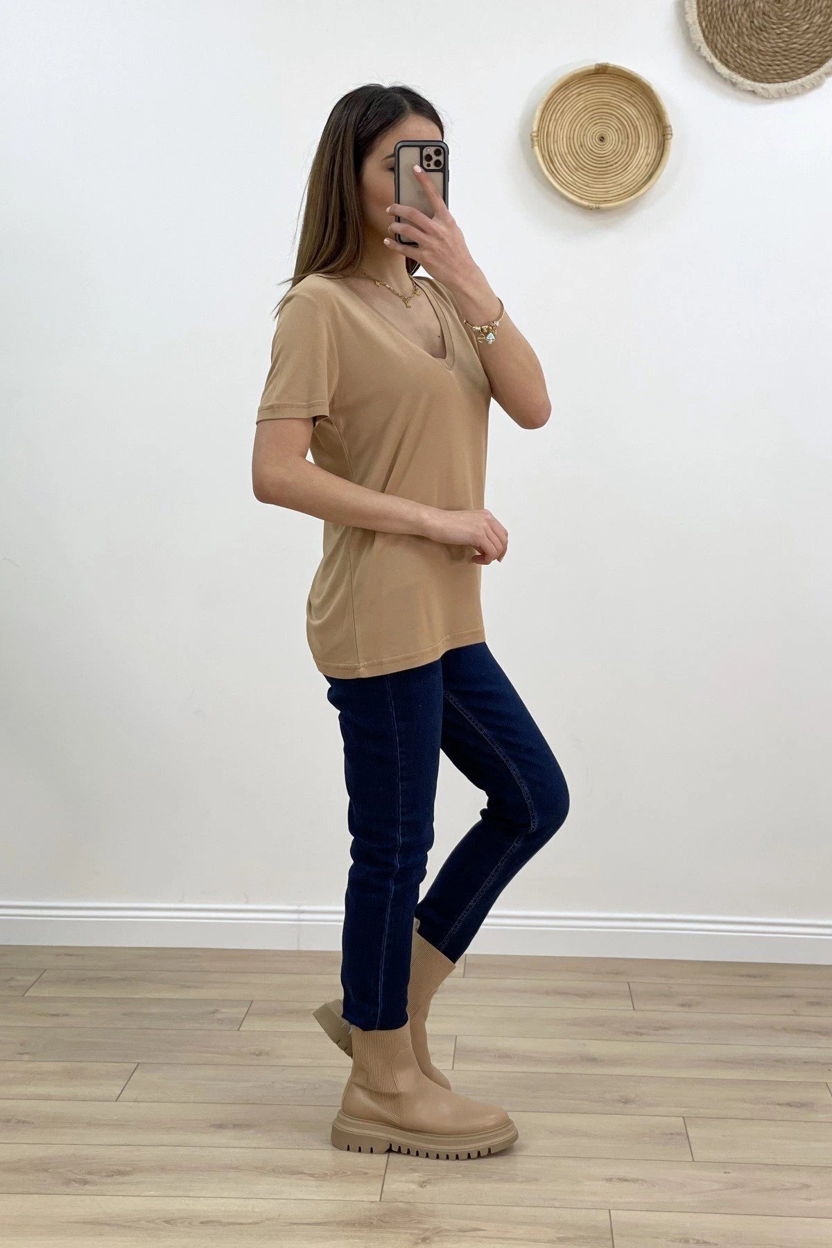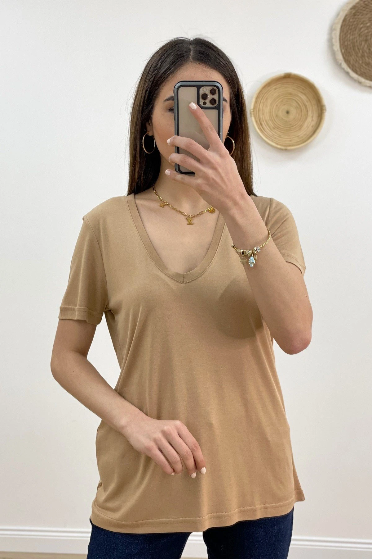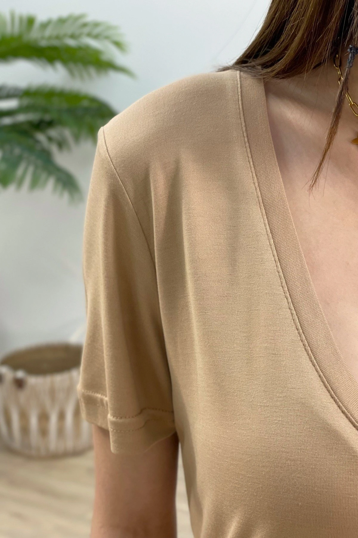 V YAKA MODAL TİŞÖRT – VİZON