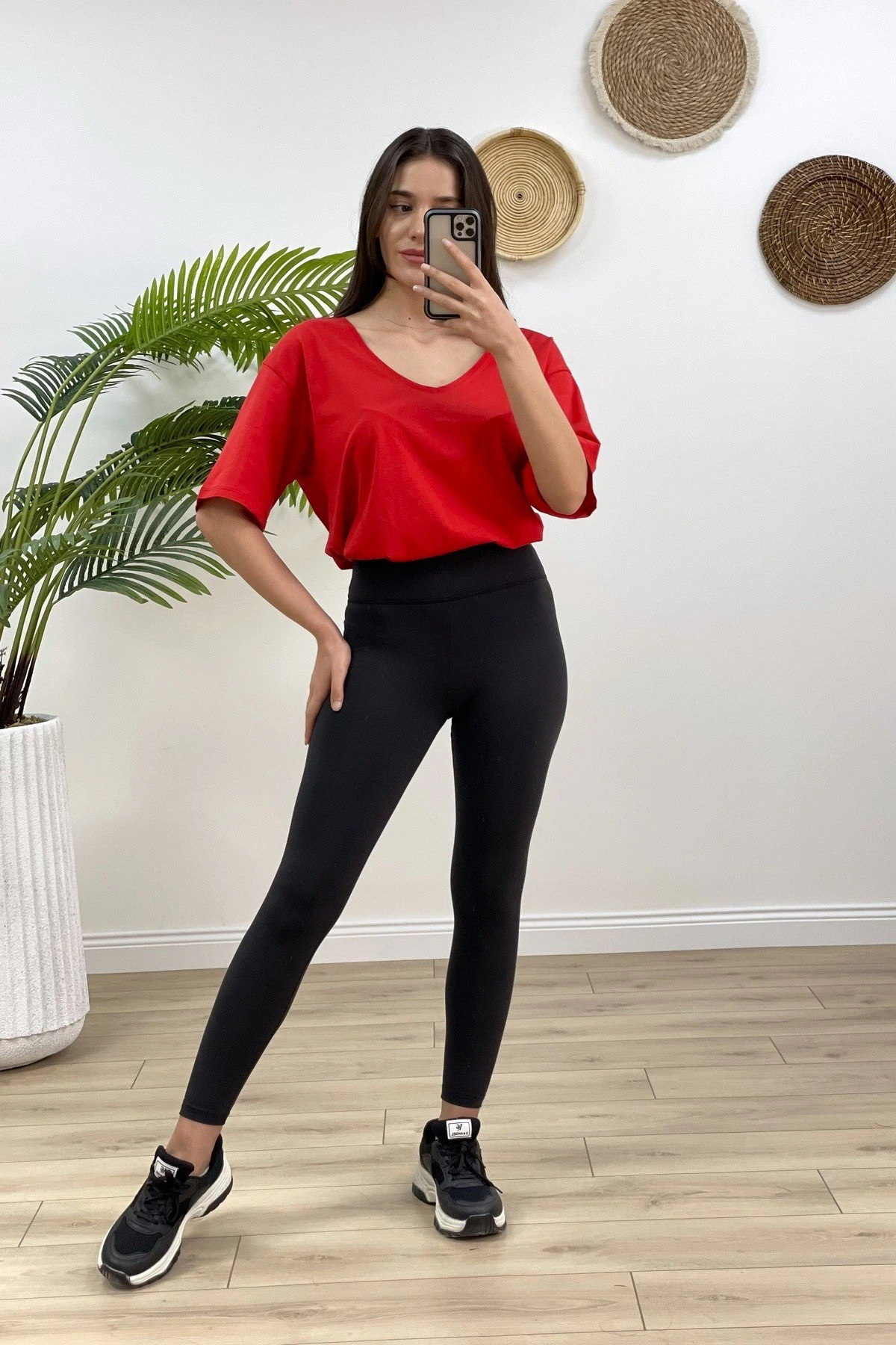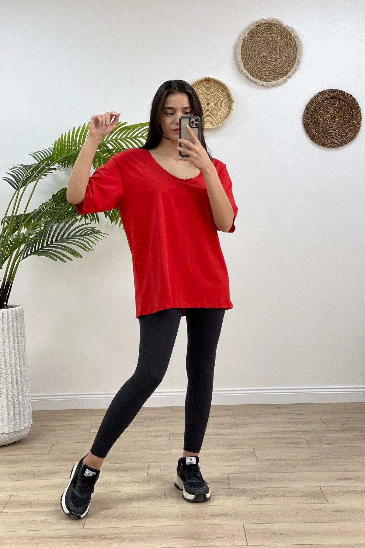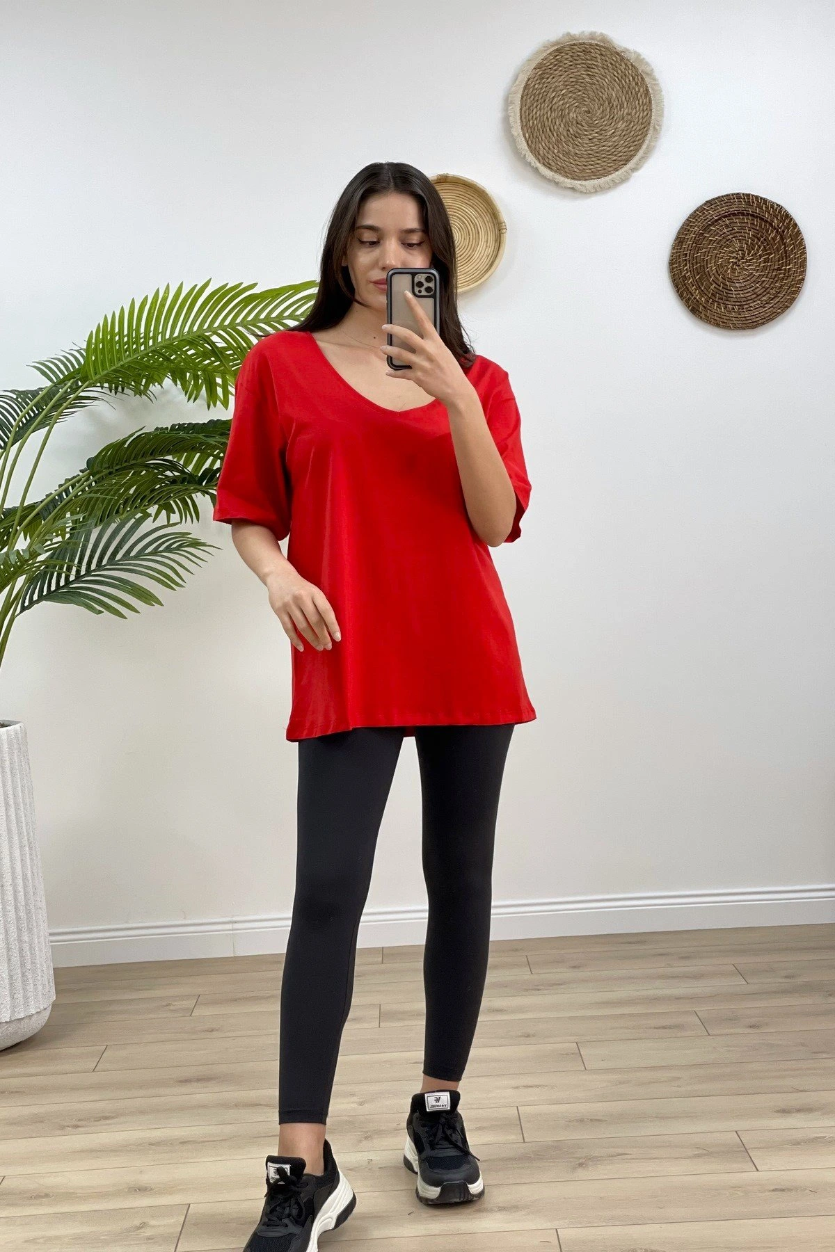 V YAKA OVERSİZE PAMUK TİŞÖRT – KIRMIZI