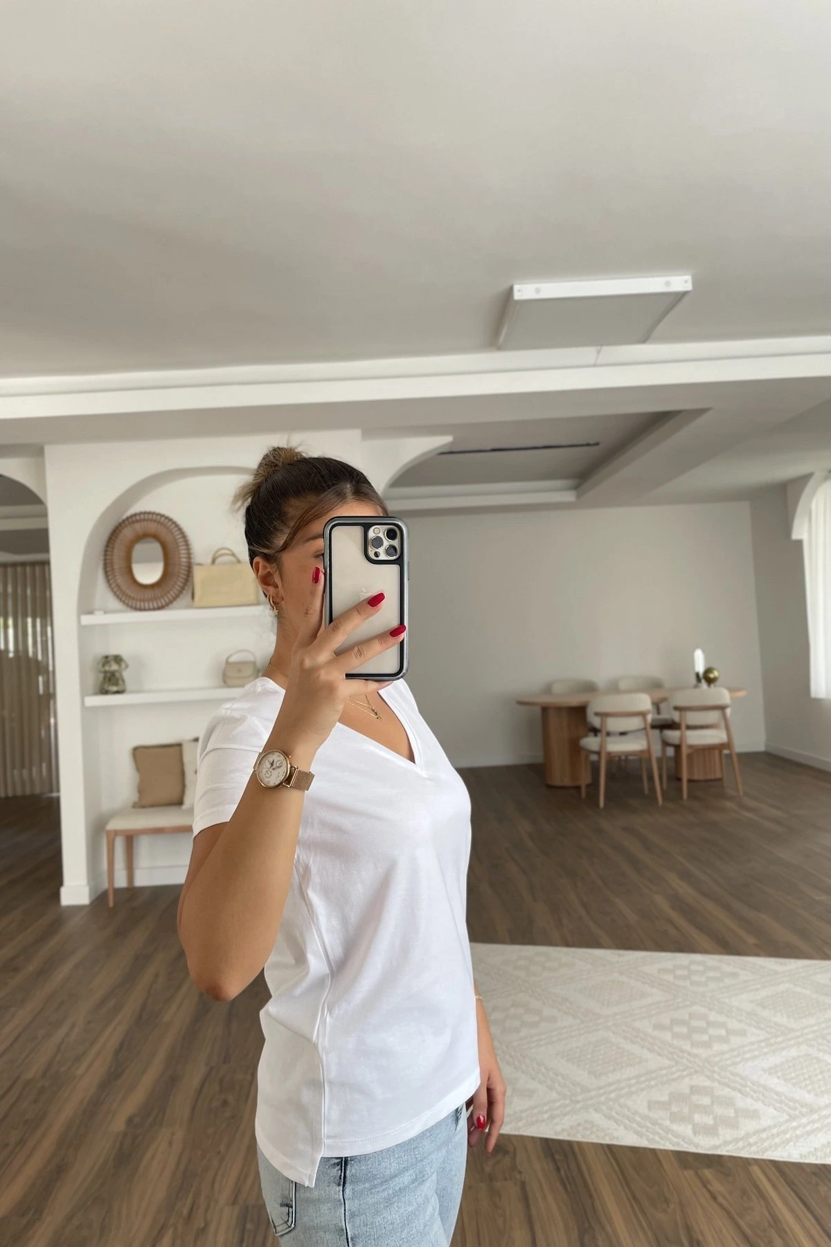 V YAKA PAMUK BASİC TİŞÖRT – BEYAZ