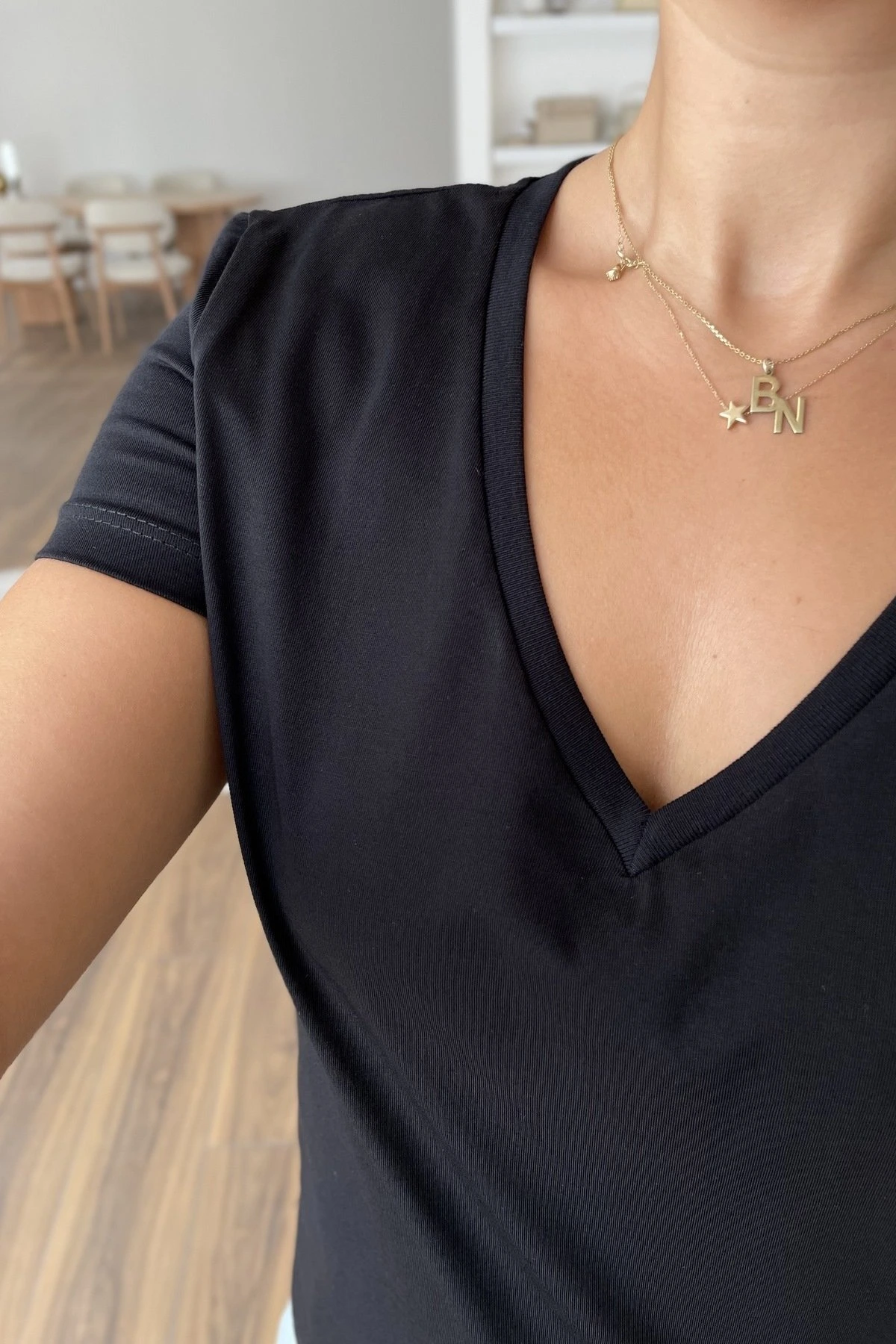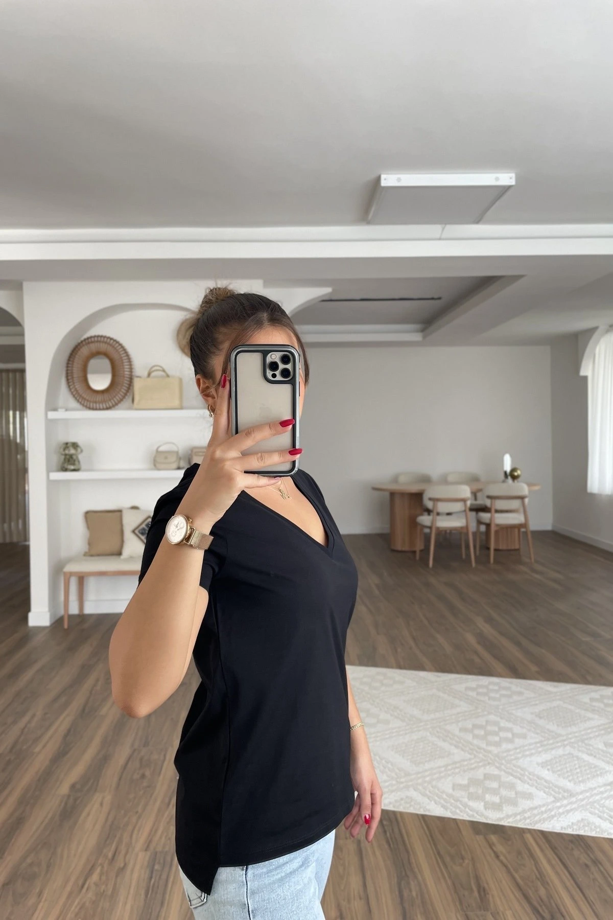 V YAKA PAMUK BASİC TİŞÖRT – SİYAH