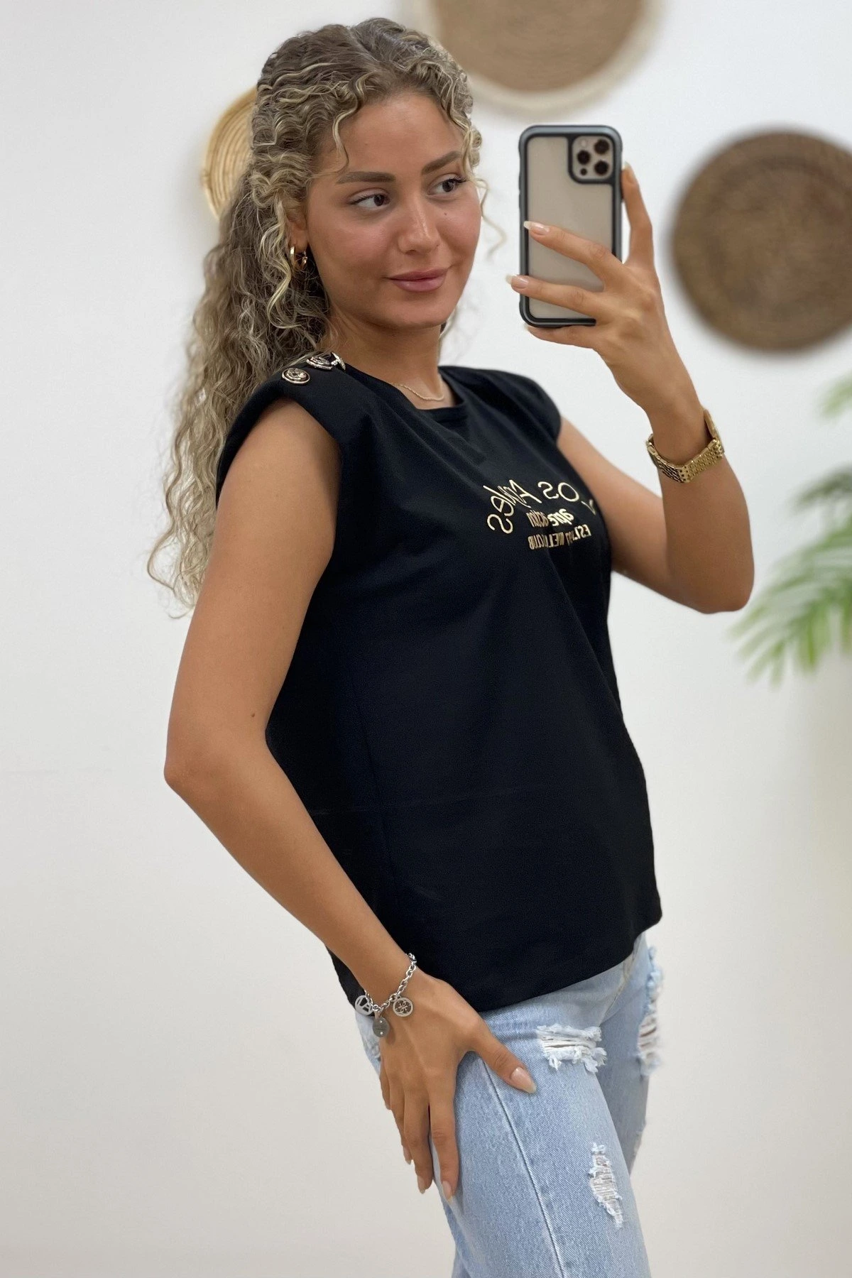 VATKALI TEK OMUZ DÜĞME BASKILI TİŞÖRT – SİYAH