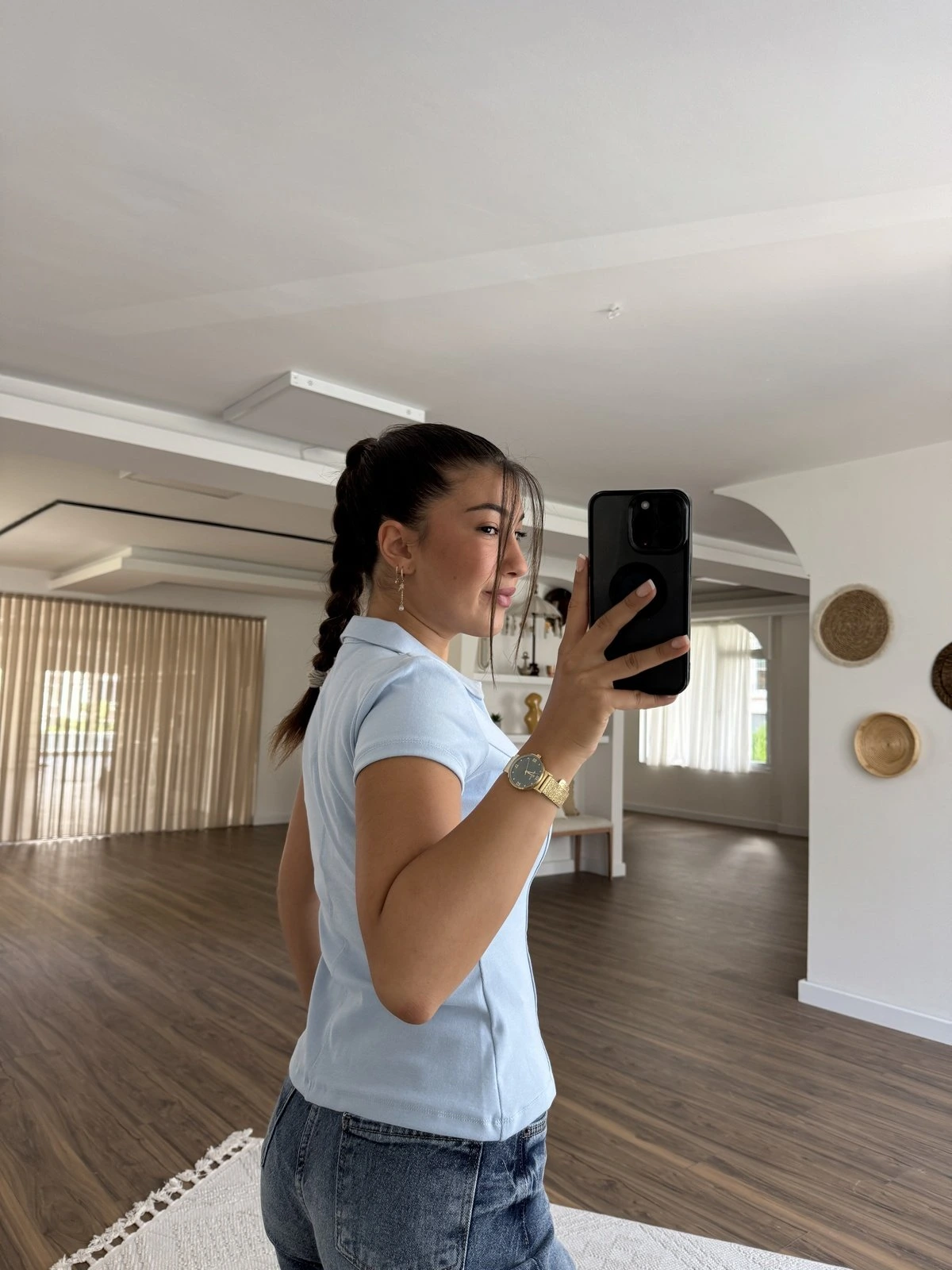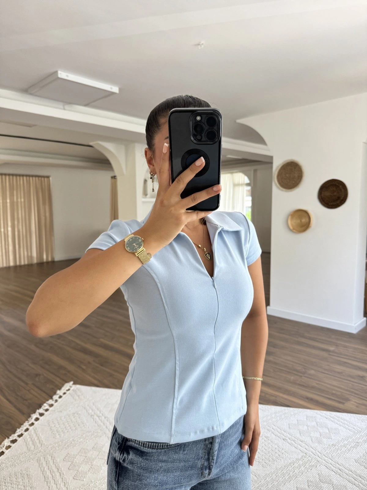 YAKALI GİZLİ FERMUAR ÇIKMA KOL PAMUK TİŞÖRT – BEBE MAVİ