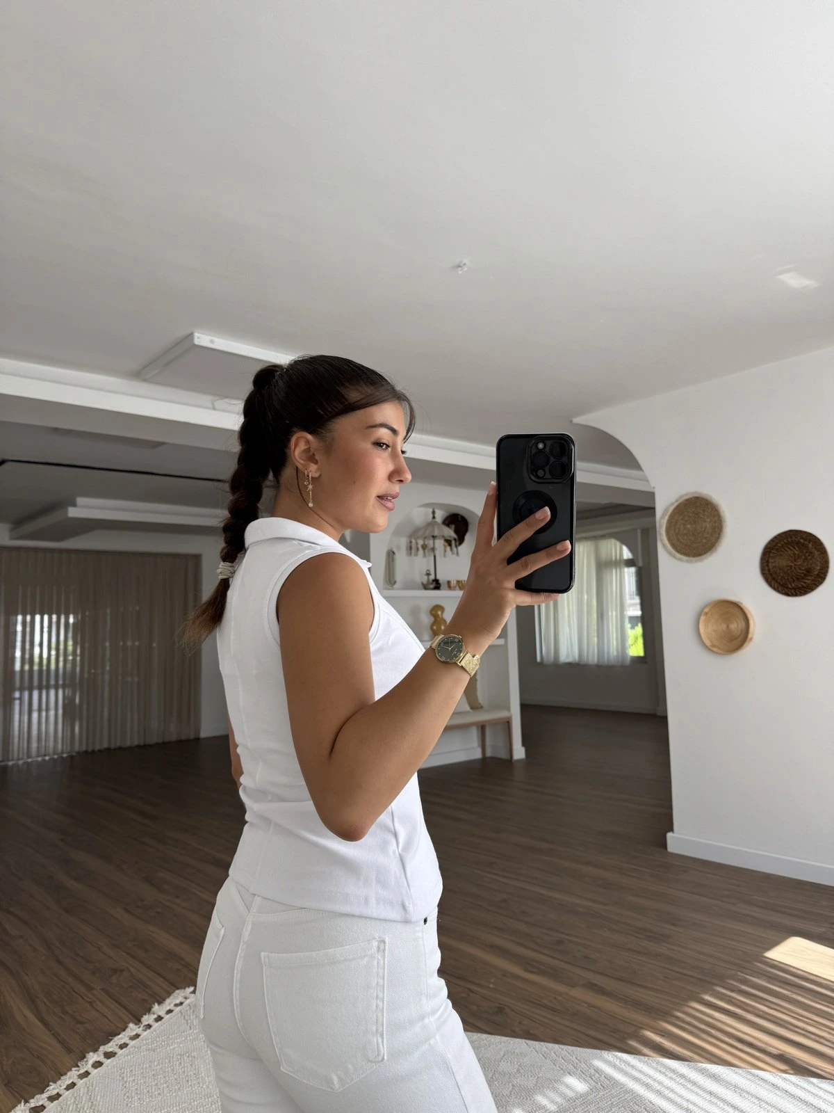 YAKALI GİZLİ FERMUAR SIFIR KOL PAMUK TİŞÖRT – BEYAZ
