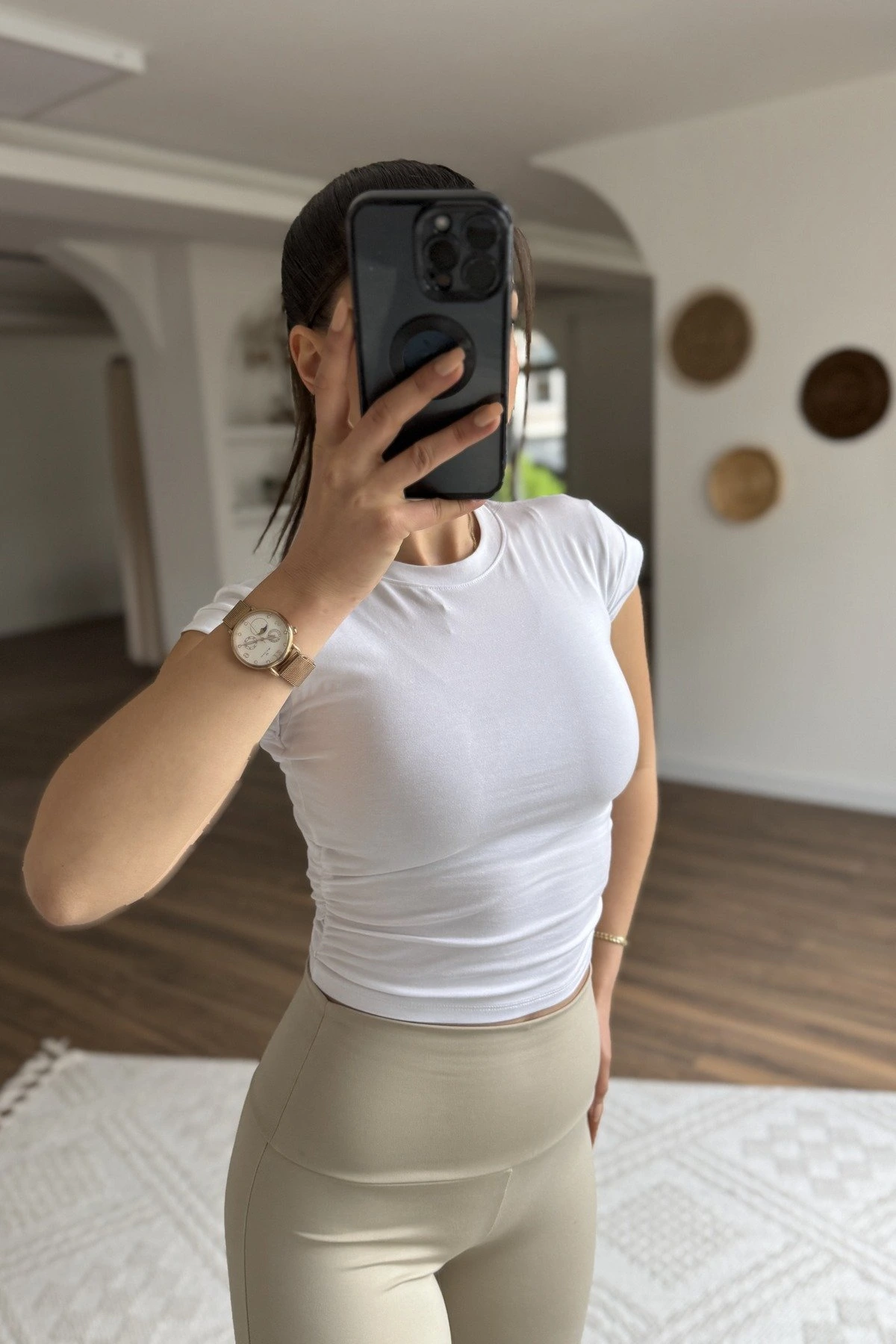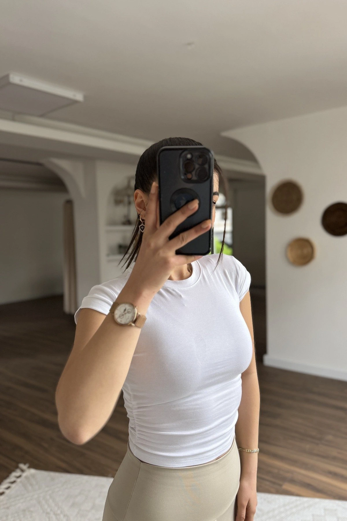 YAN BÜZGÜ MODAL PAMUK CROP TİŞÖRT – BEYAZ