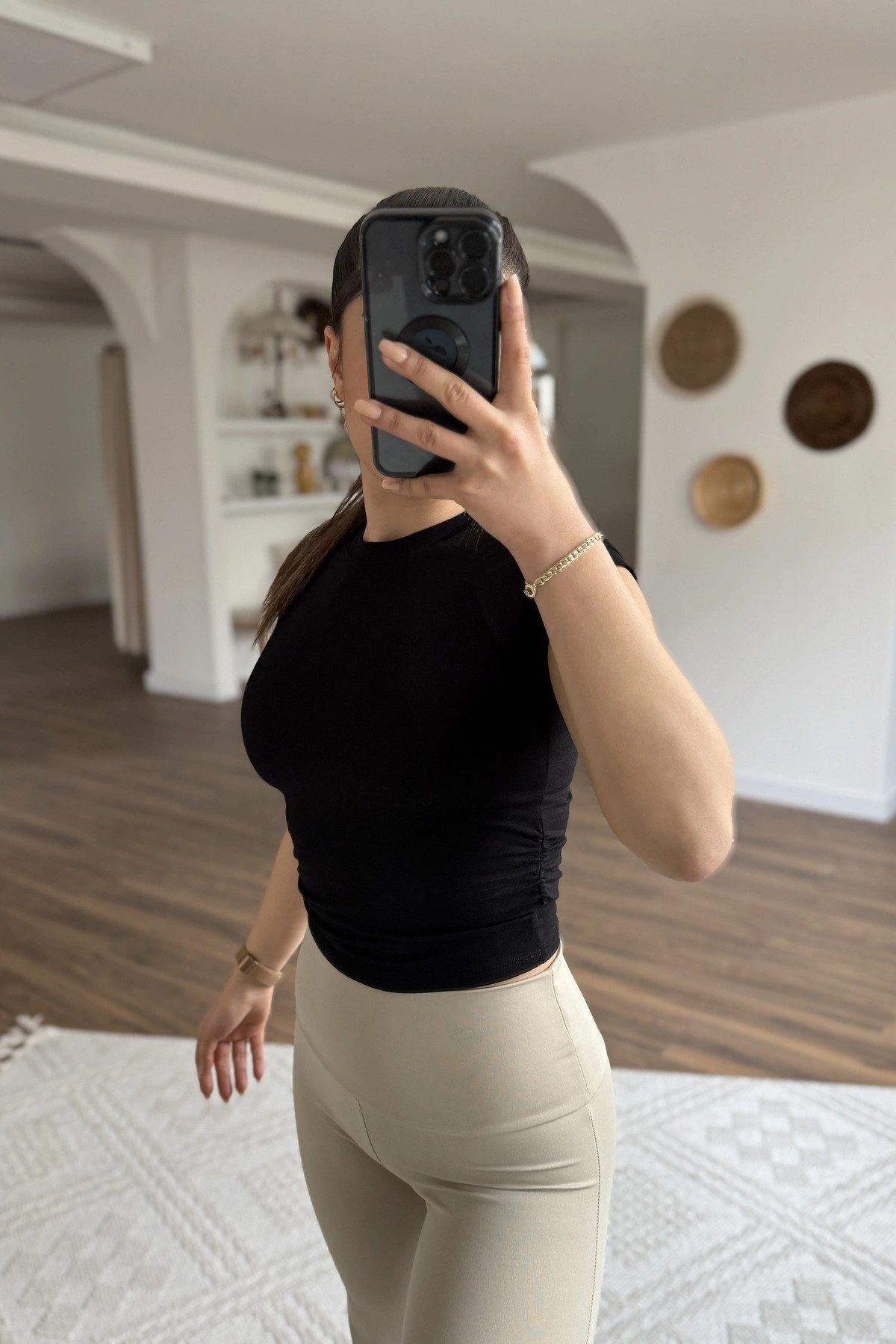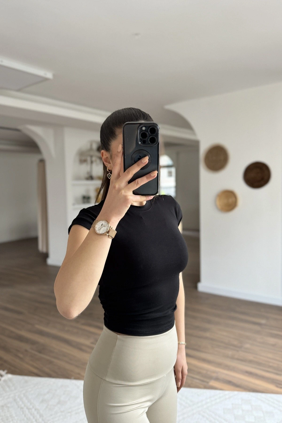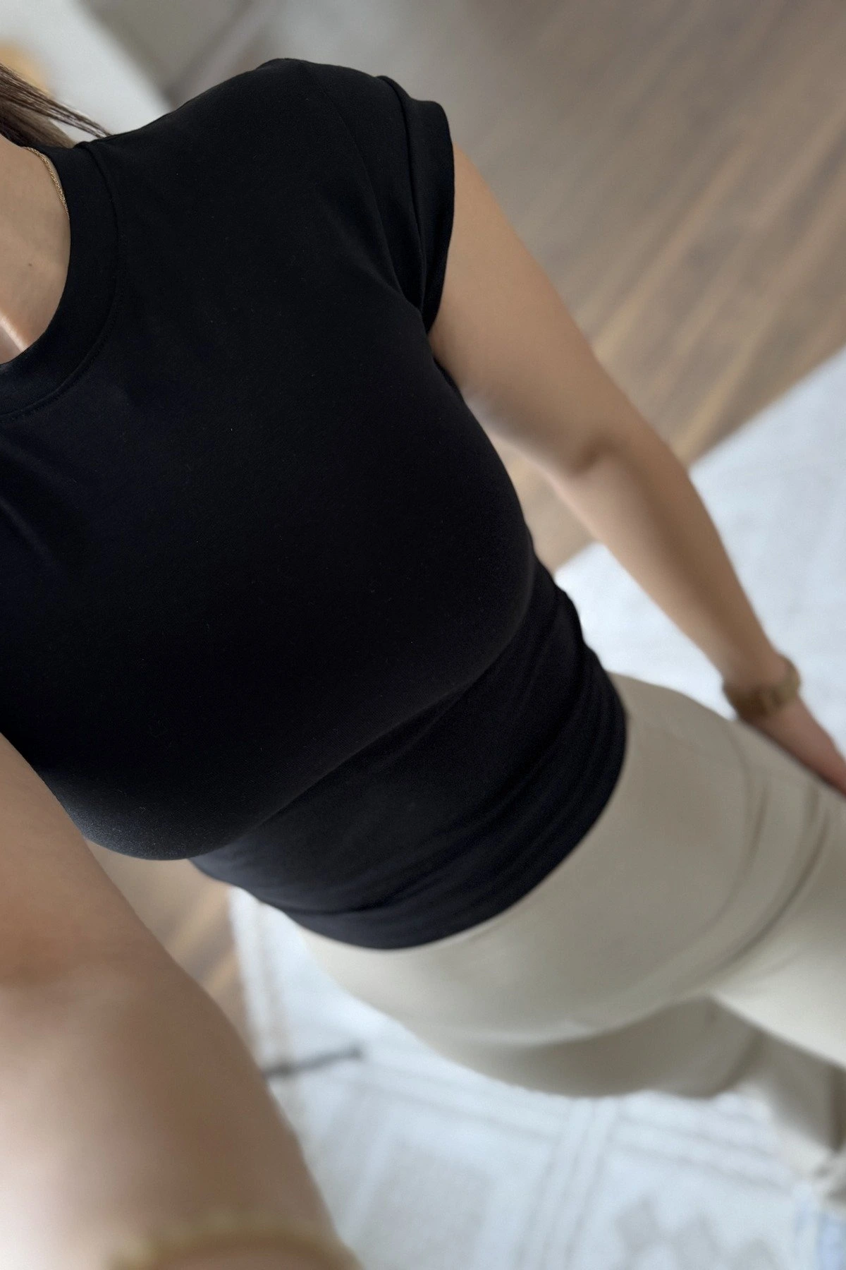 YAN BÜZGÜ MODAL PAMUK CROP TİŞÖRT – SİYAH