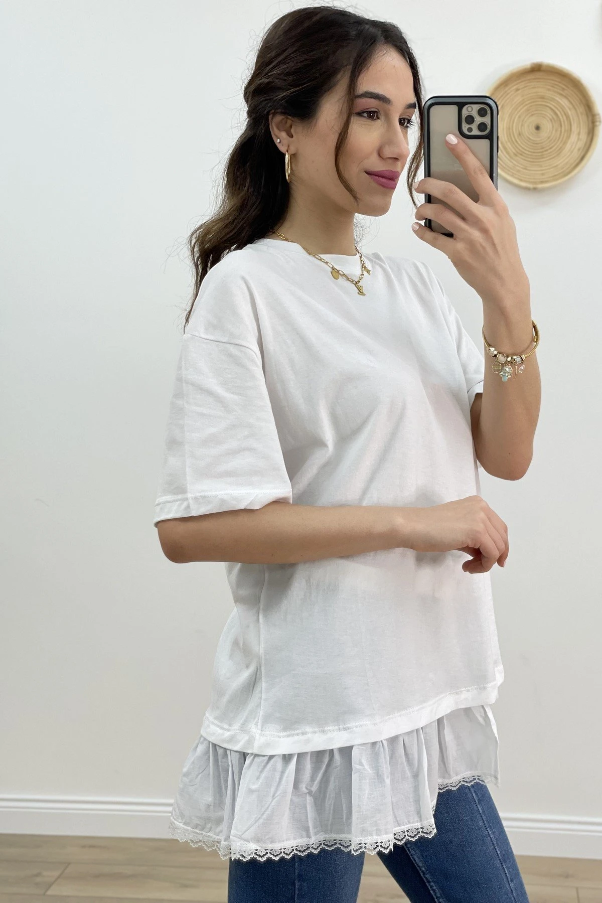 YAN ETEK UCU FİSTO TİŞÖRT – BEYAZ