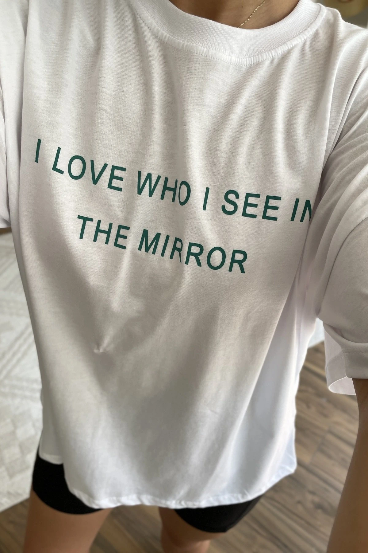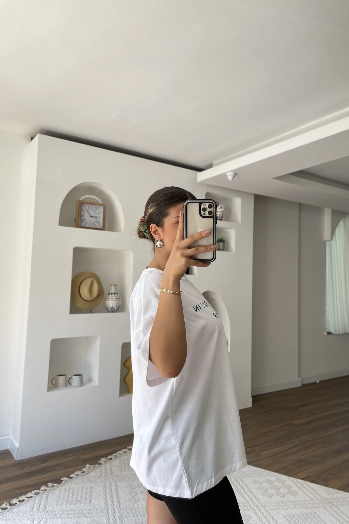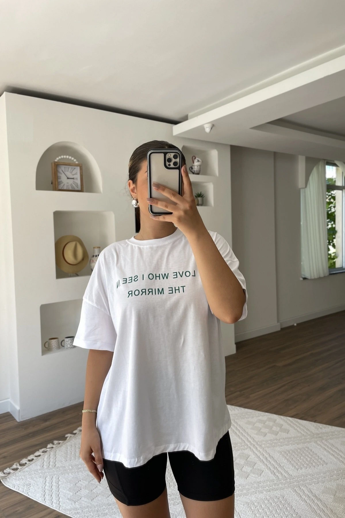 YAZI BASKI SALAŞ PAMUK TİŞÖRT – BEYAZYEŞİL