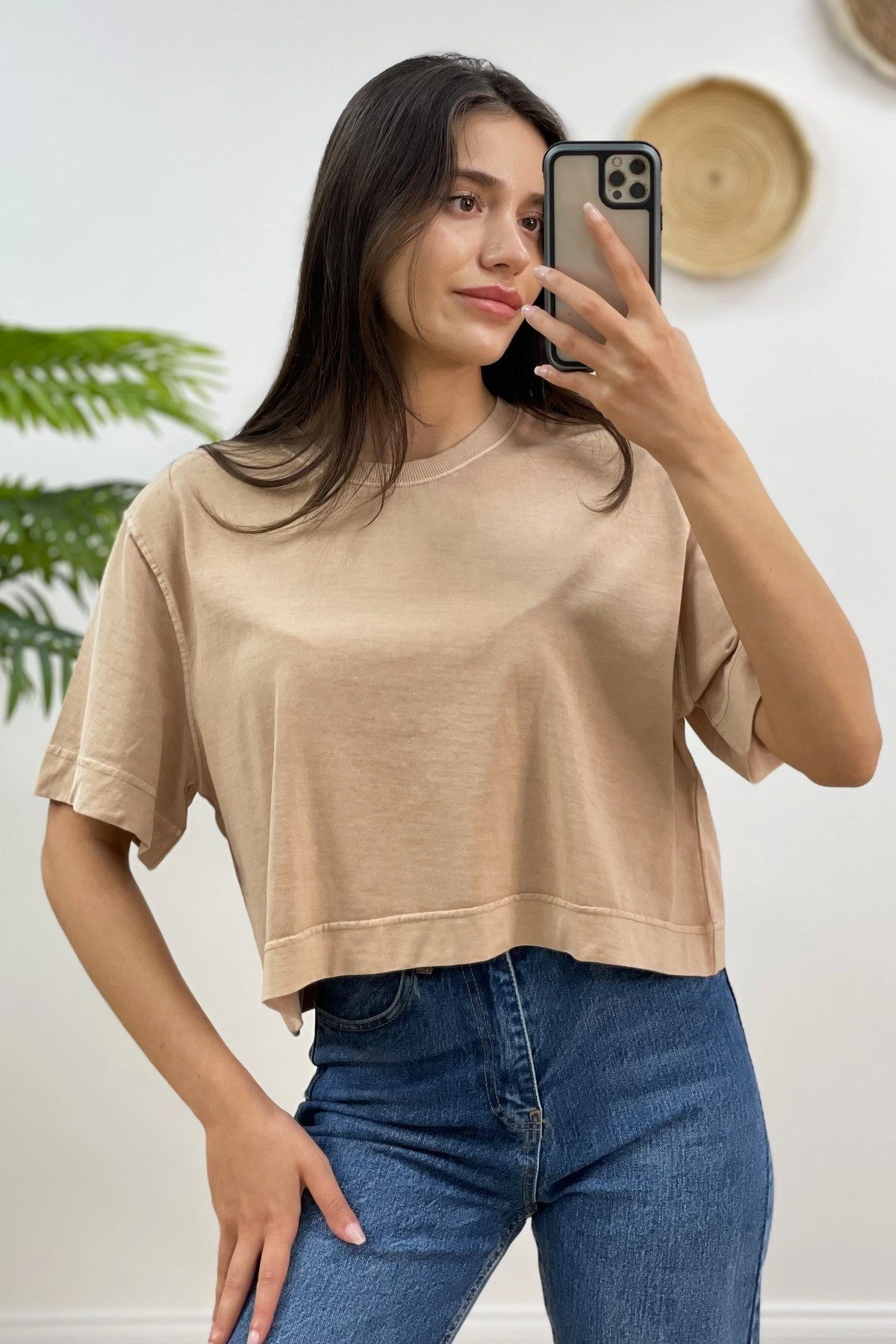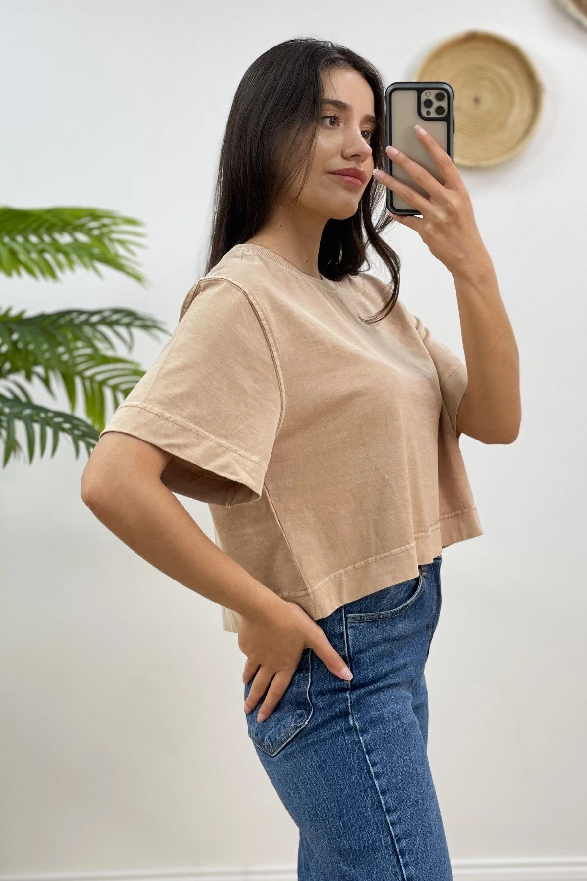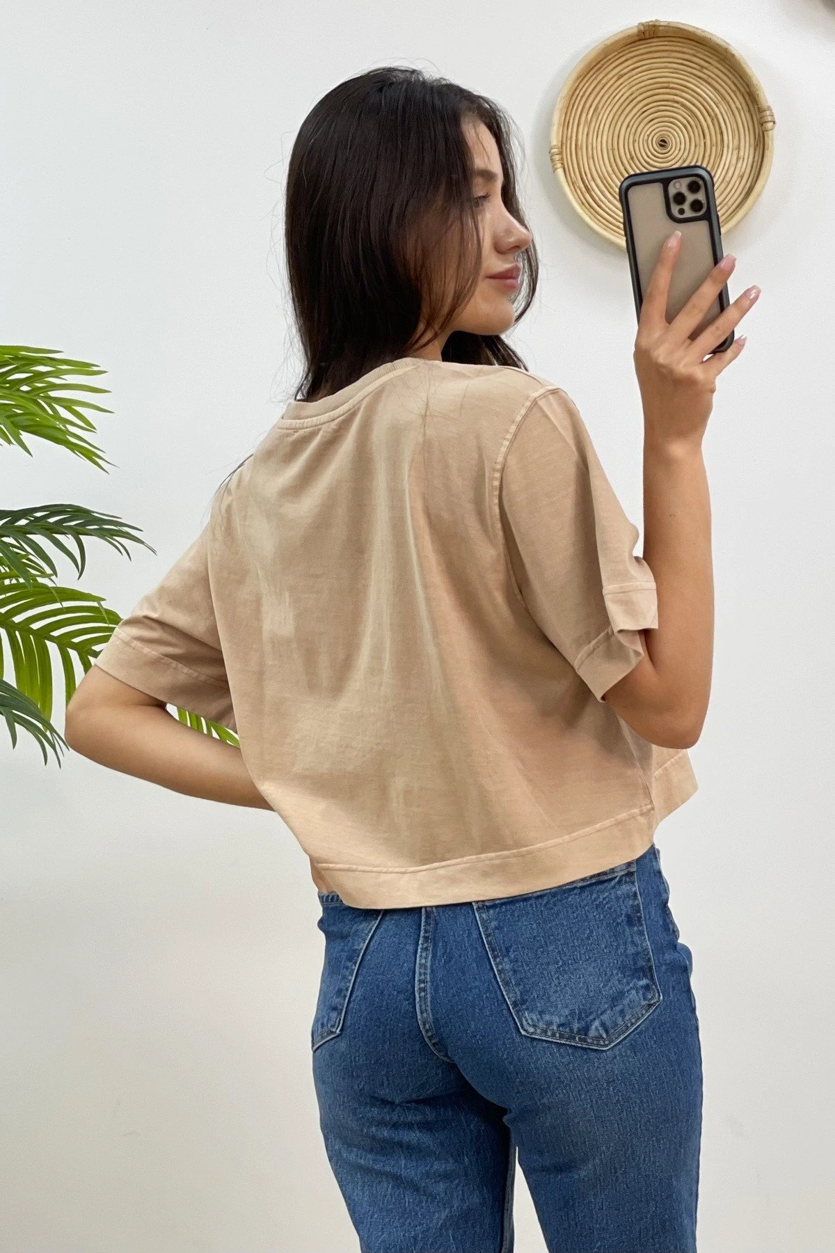 YIKAMALI CROP SALAŞ TİŞÖRT – BEJ