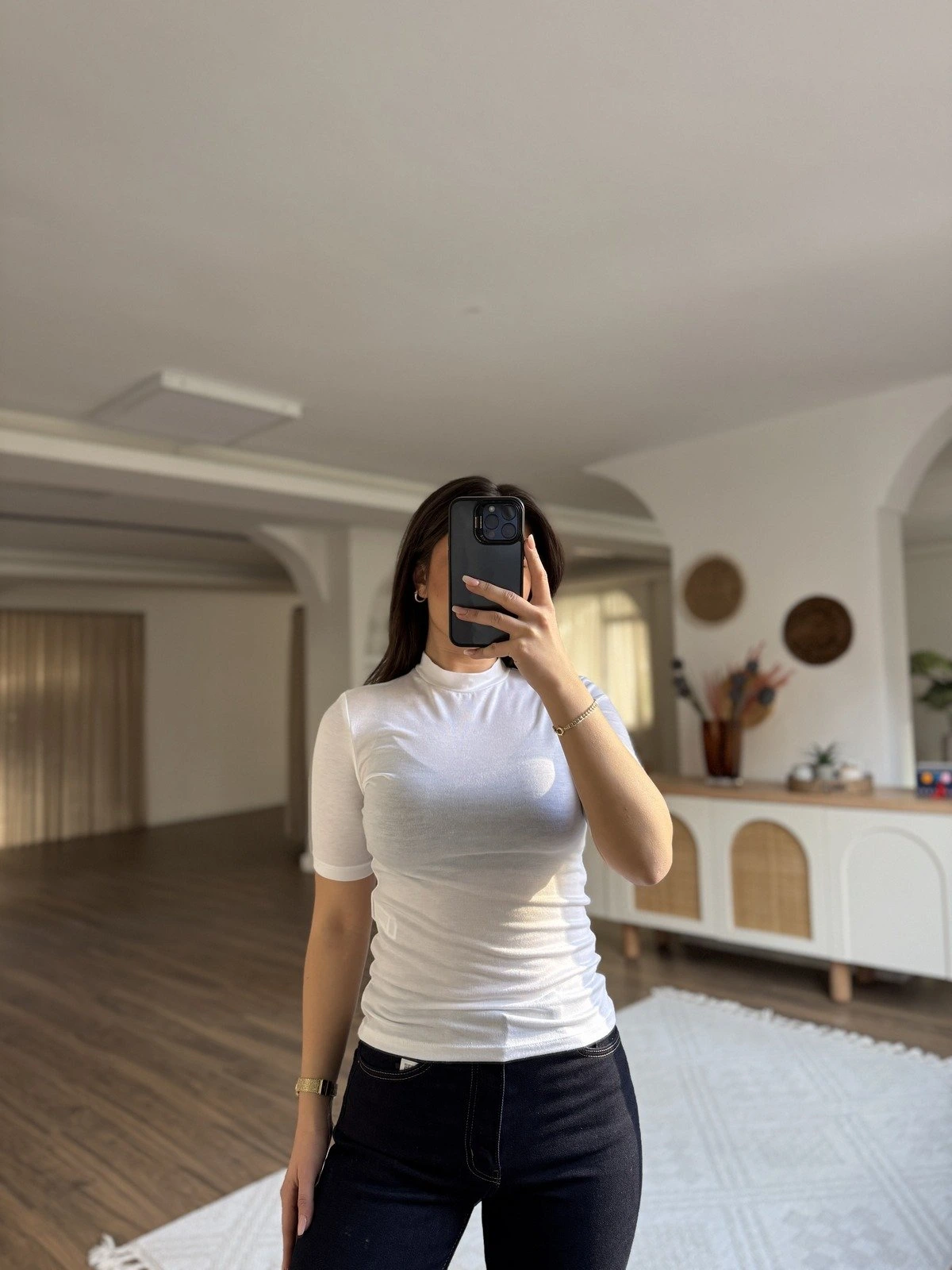 YÜKSEK YAKA LİKRALI VİSKON TİŞÖRT – BEYAZ