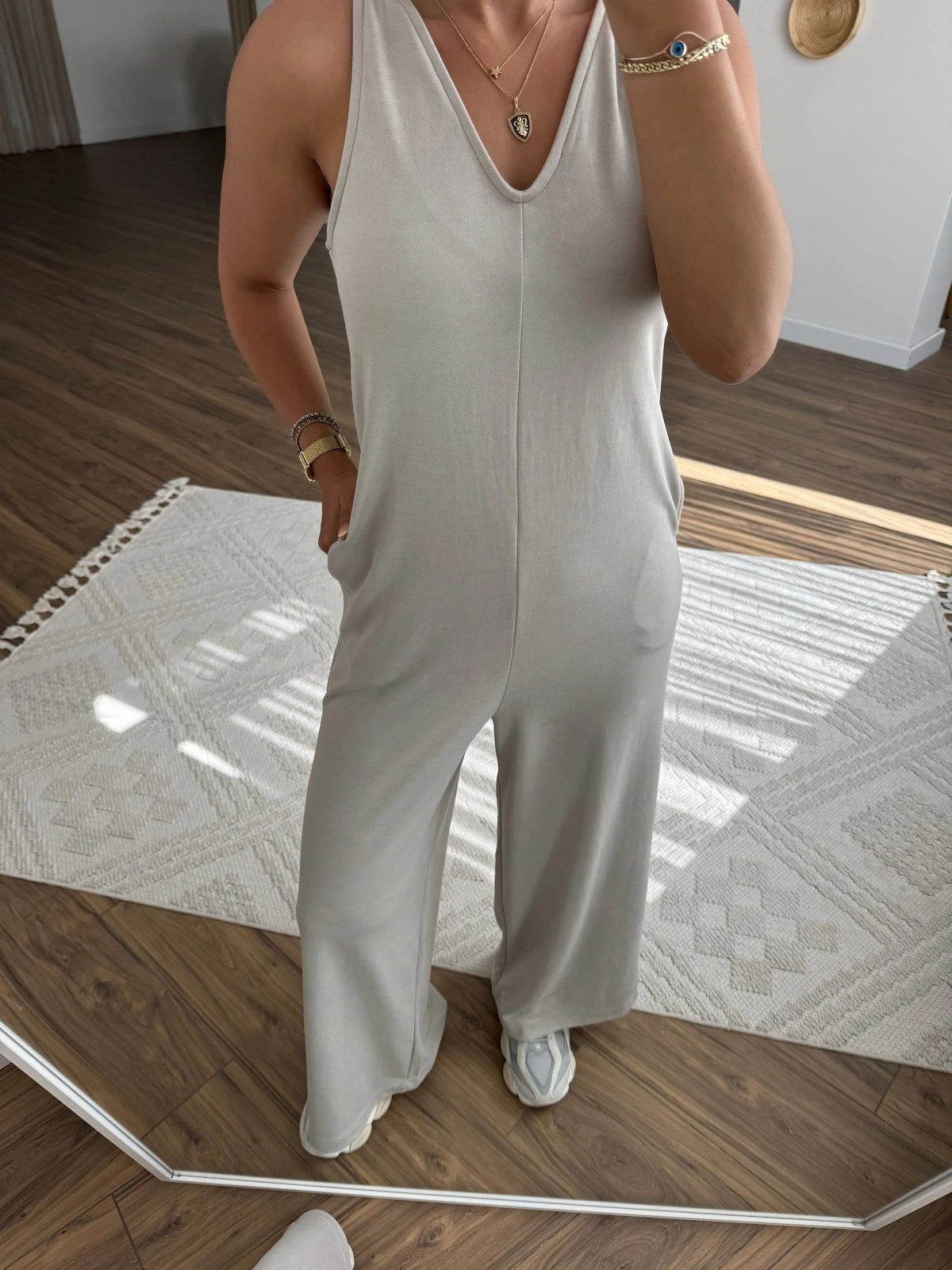 ARKA BAĞLAMALI CEPLİ MODAL RAHAT TULUM - GRİ