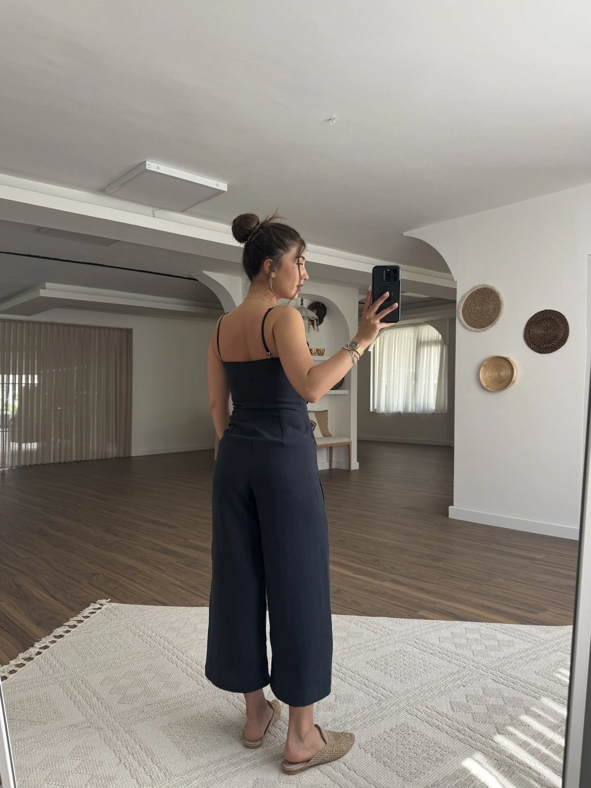 ÖN BAĞLAMALI ASKI AYARLI BİLEK ÜSTÜ MODAL TULUM – LACİVERT