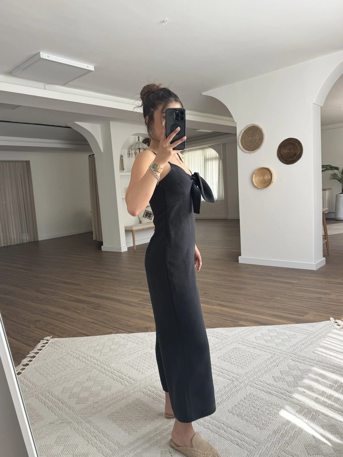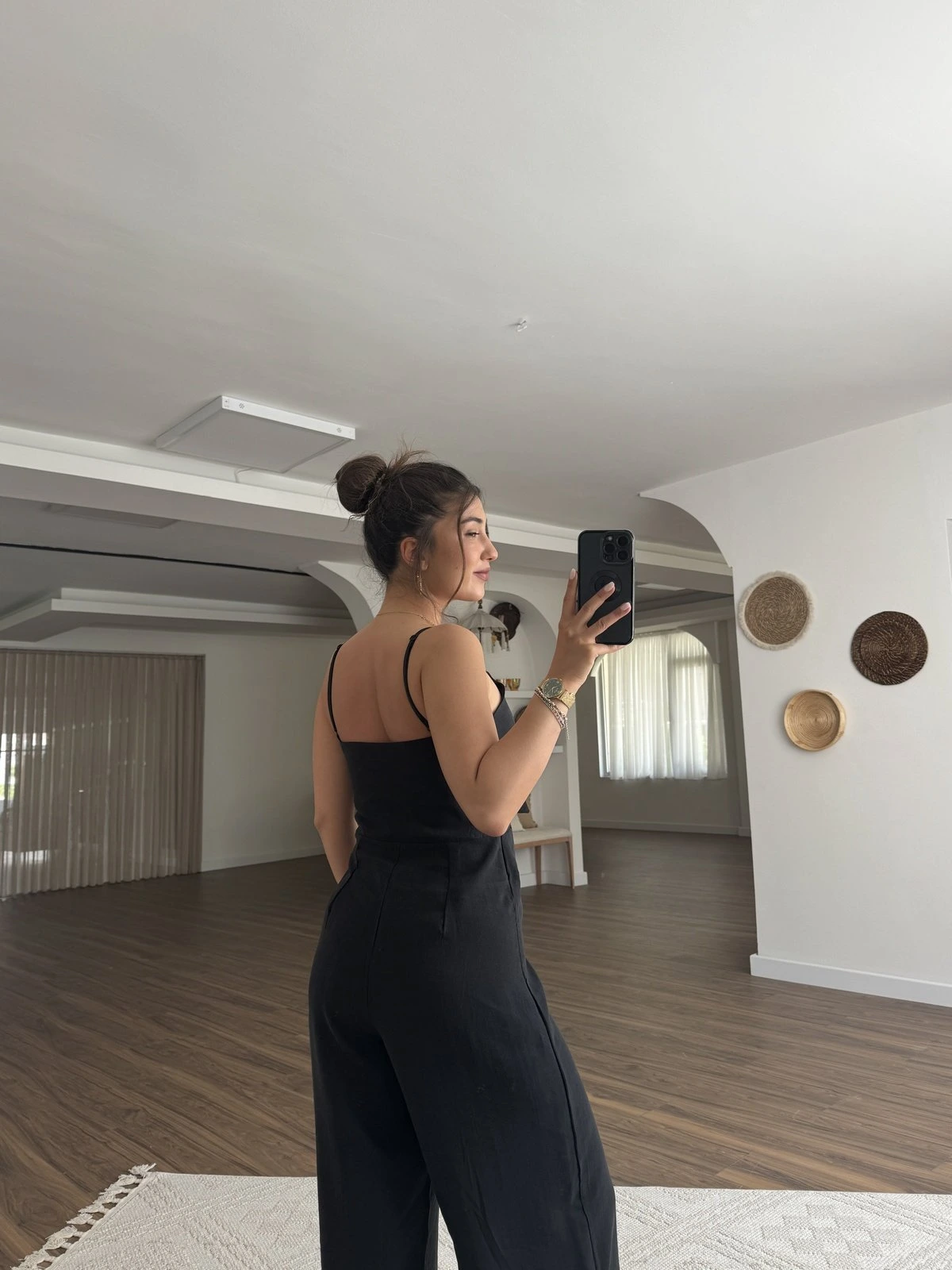 ÖN BAĞLAMALI ASKI AYARLI BİLEK ÜSTÜ MODAL TULUM – SİYAH