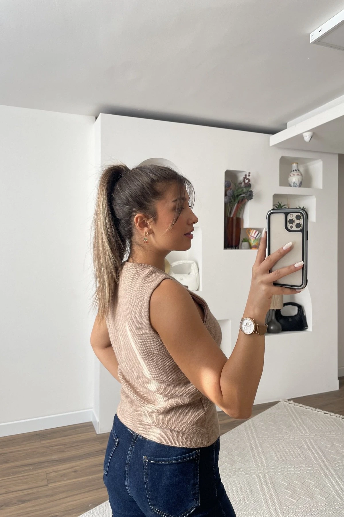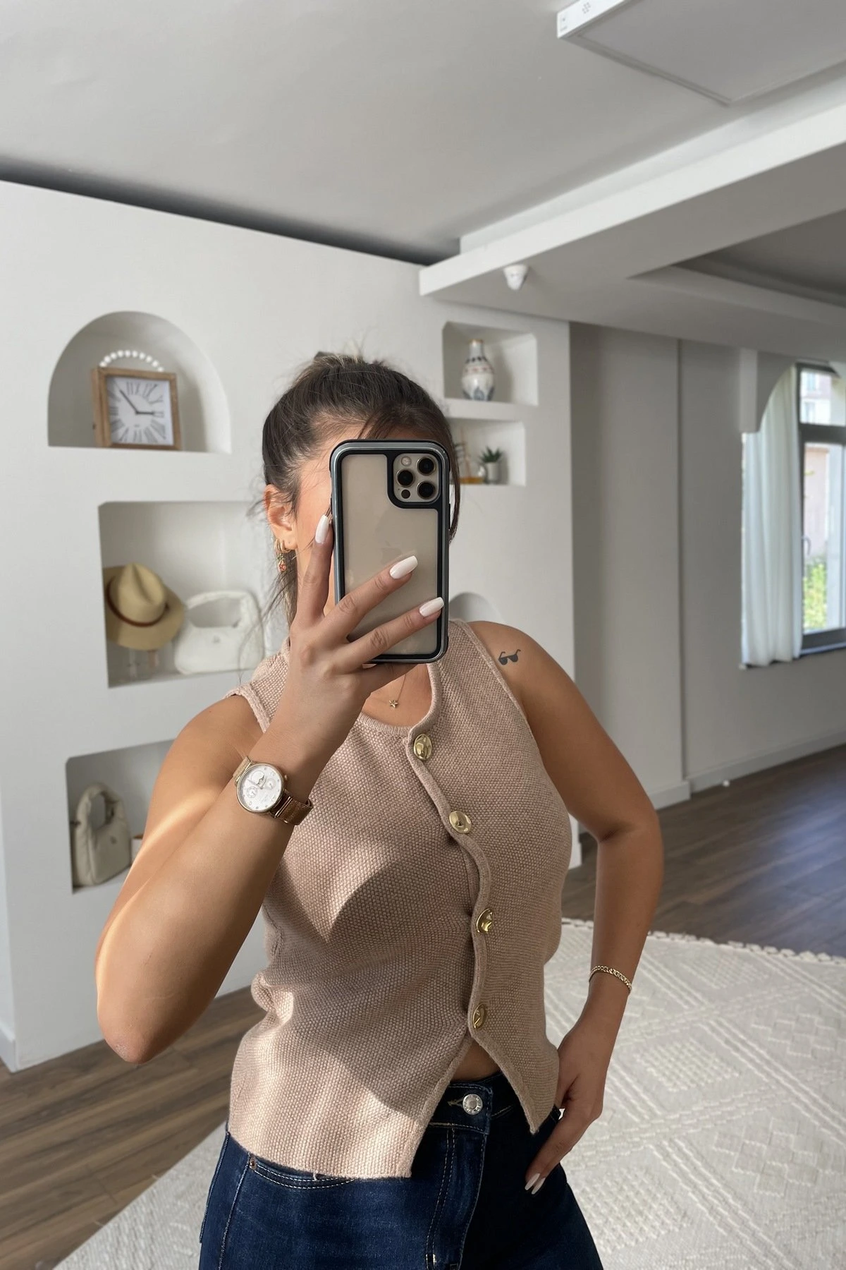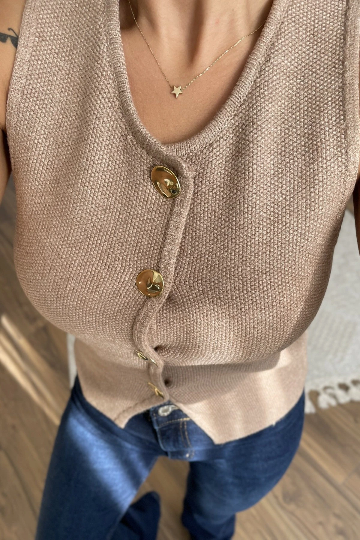 4 DÜĞME VİSKON TRİKO YELEK – CAMEL