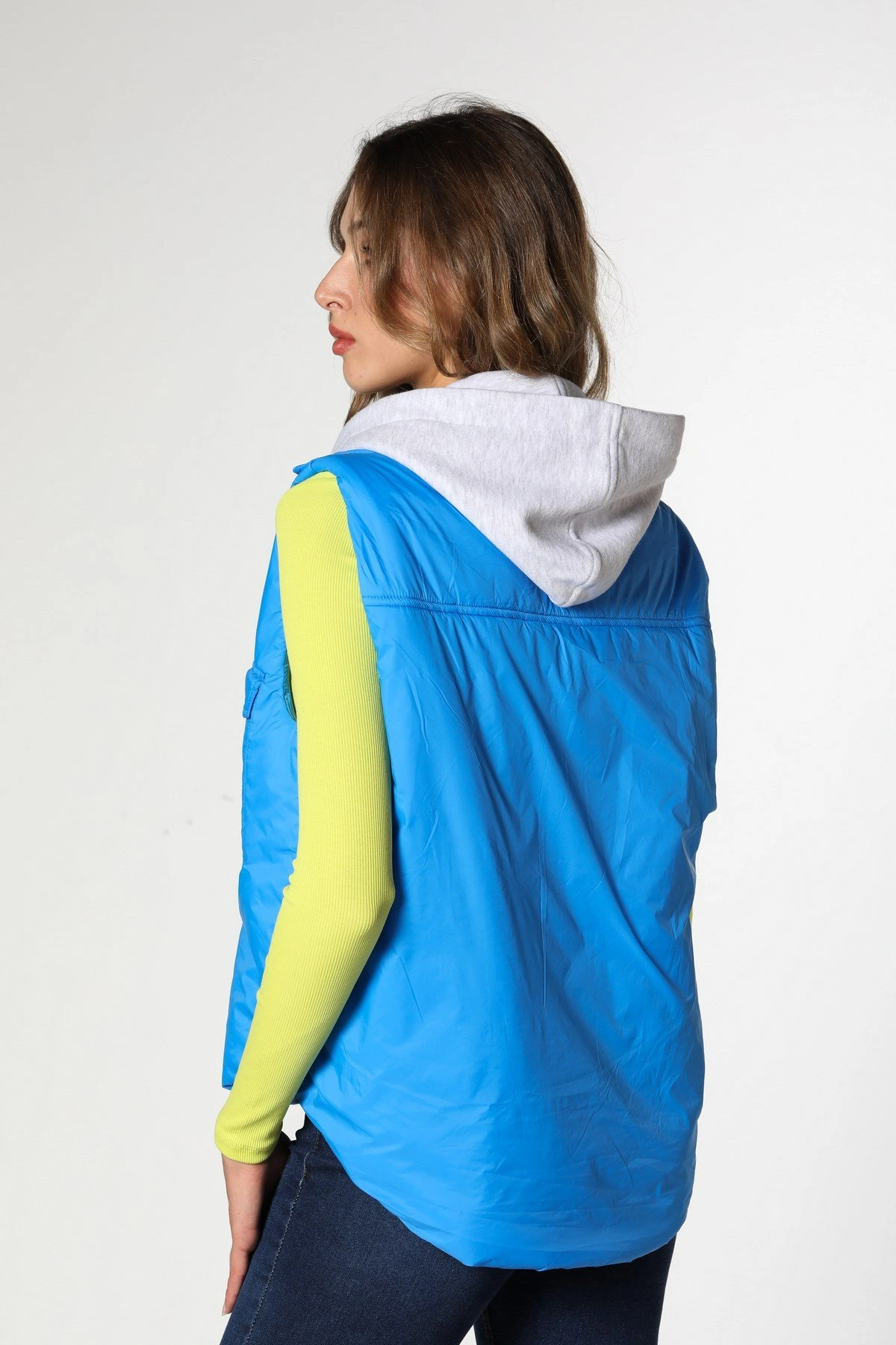 CEPLİ GARNİLİ KAPŞONLU YELEK – SAKS