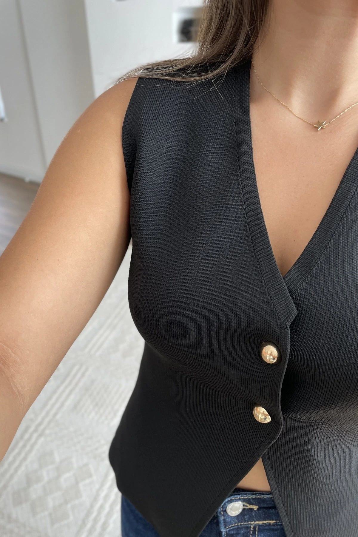ÇİFT DÜĞME ÇELİK ÖRME YELEK – SİYAH