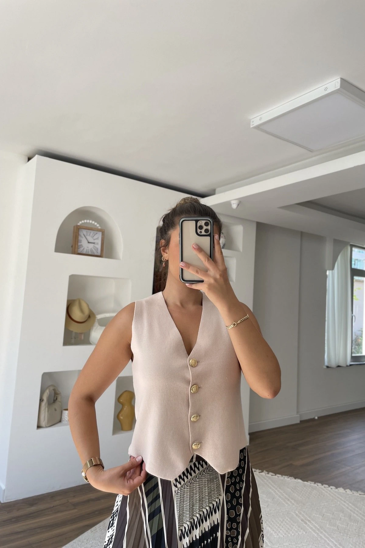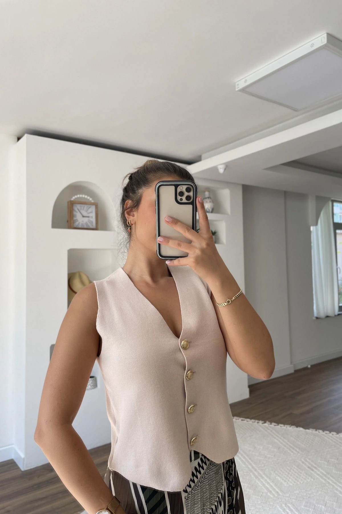 GOLD DÜĞME VİSKON TRİKO YELEK – BEJ