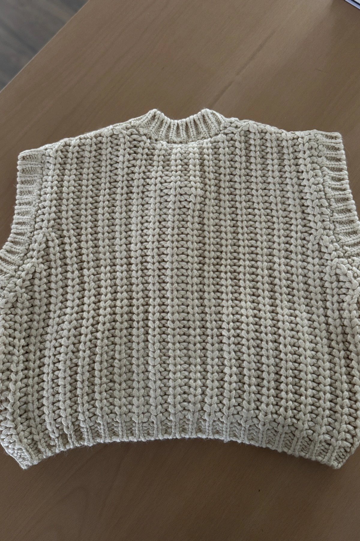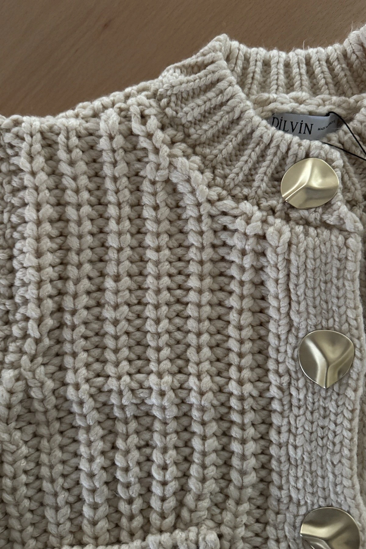 KALIN ÖRGÜ BÜYÜK AKSESUAR DÜĞME CEPLİ YELEK – KREM