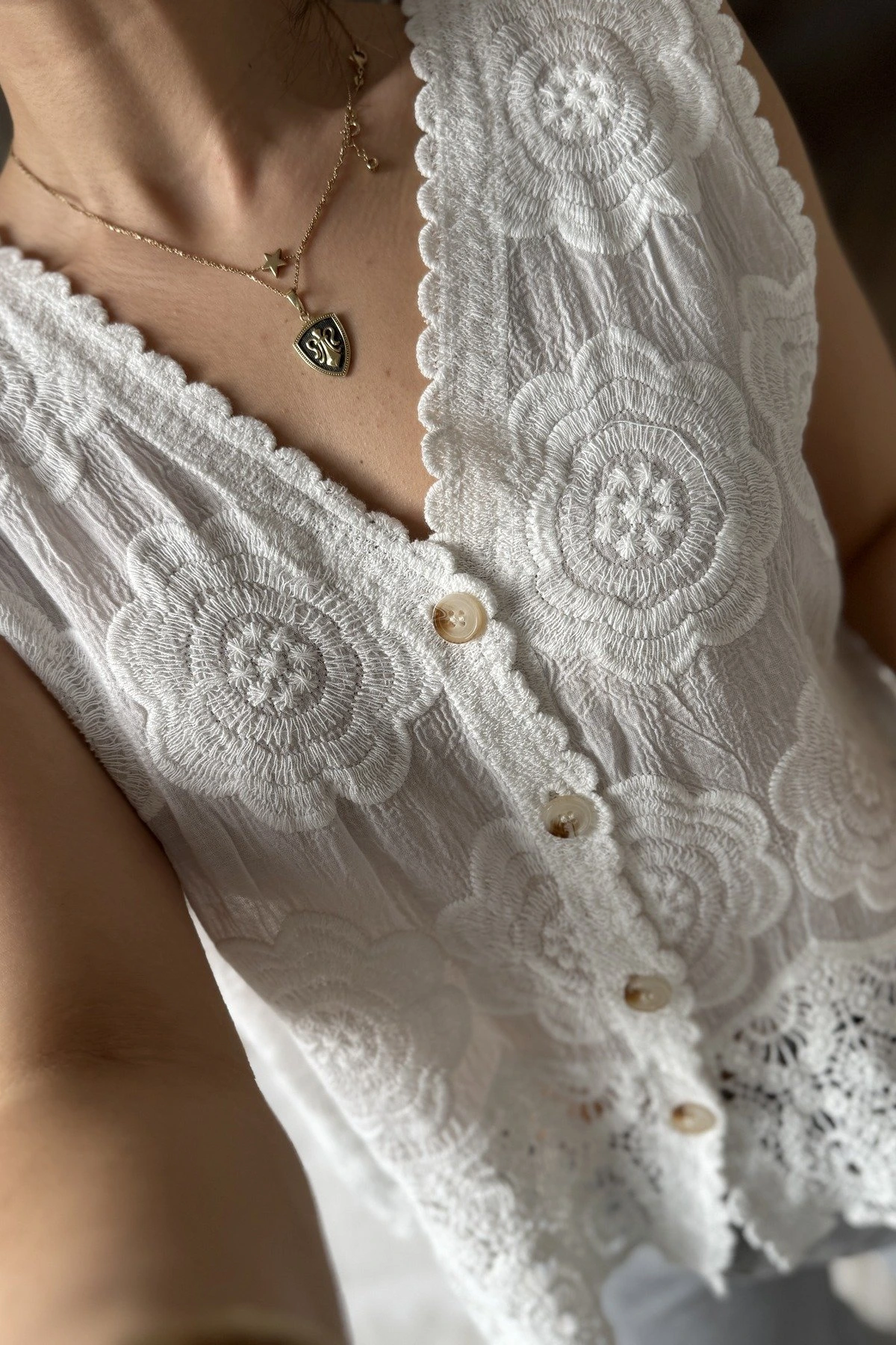 MOTİF DOKUMA KUMAŞ MİX YELEK – EKRU