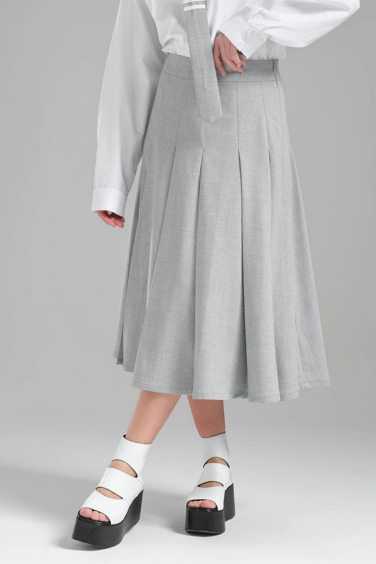BELE OTURAN PİLELİ VİSKON KRAVAT AKSESUAR MİDİ ETEK – GRİ