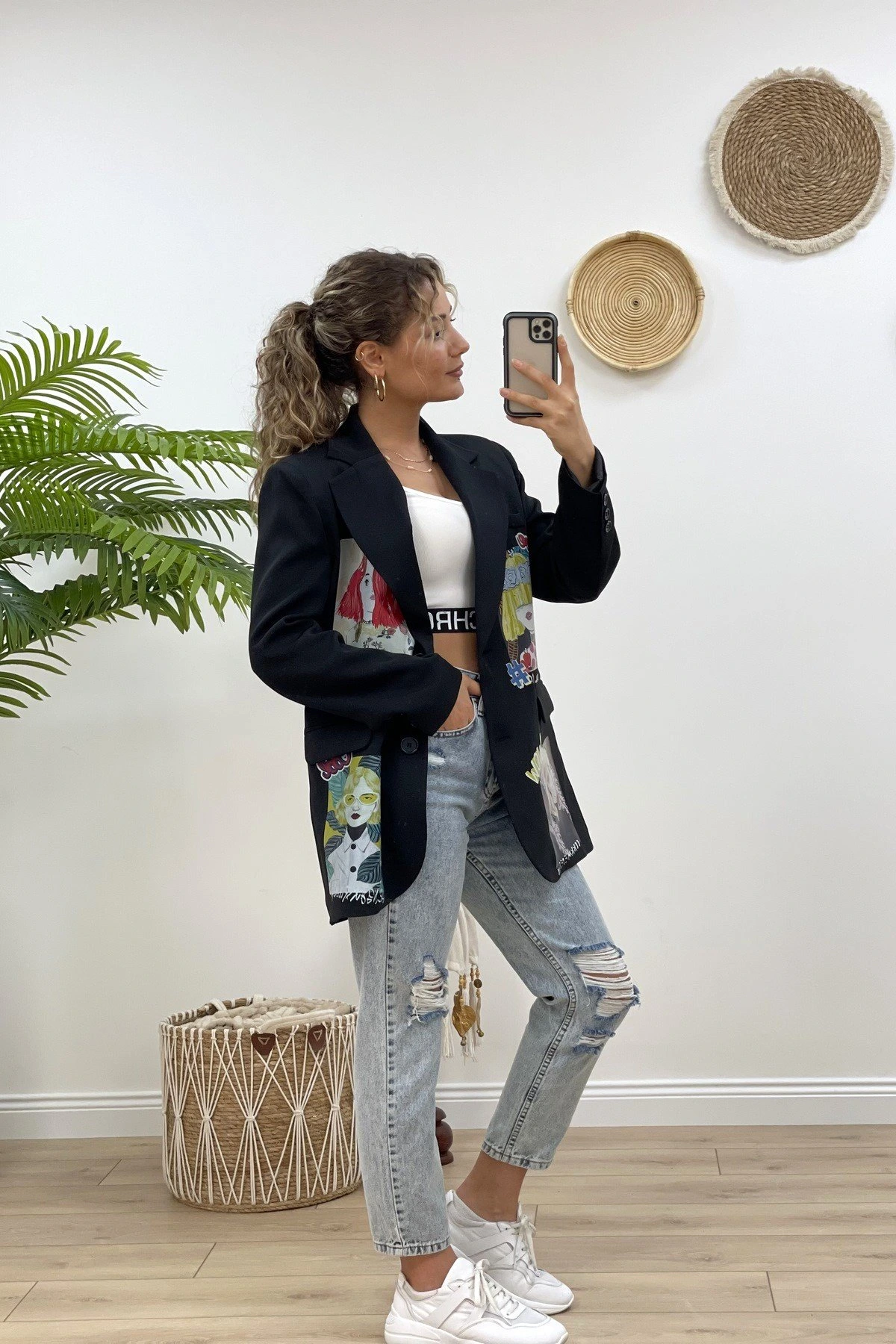 BALIKÇI YAKA VİSKON FİTİLLİ TRİKO – SİYAH