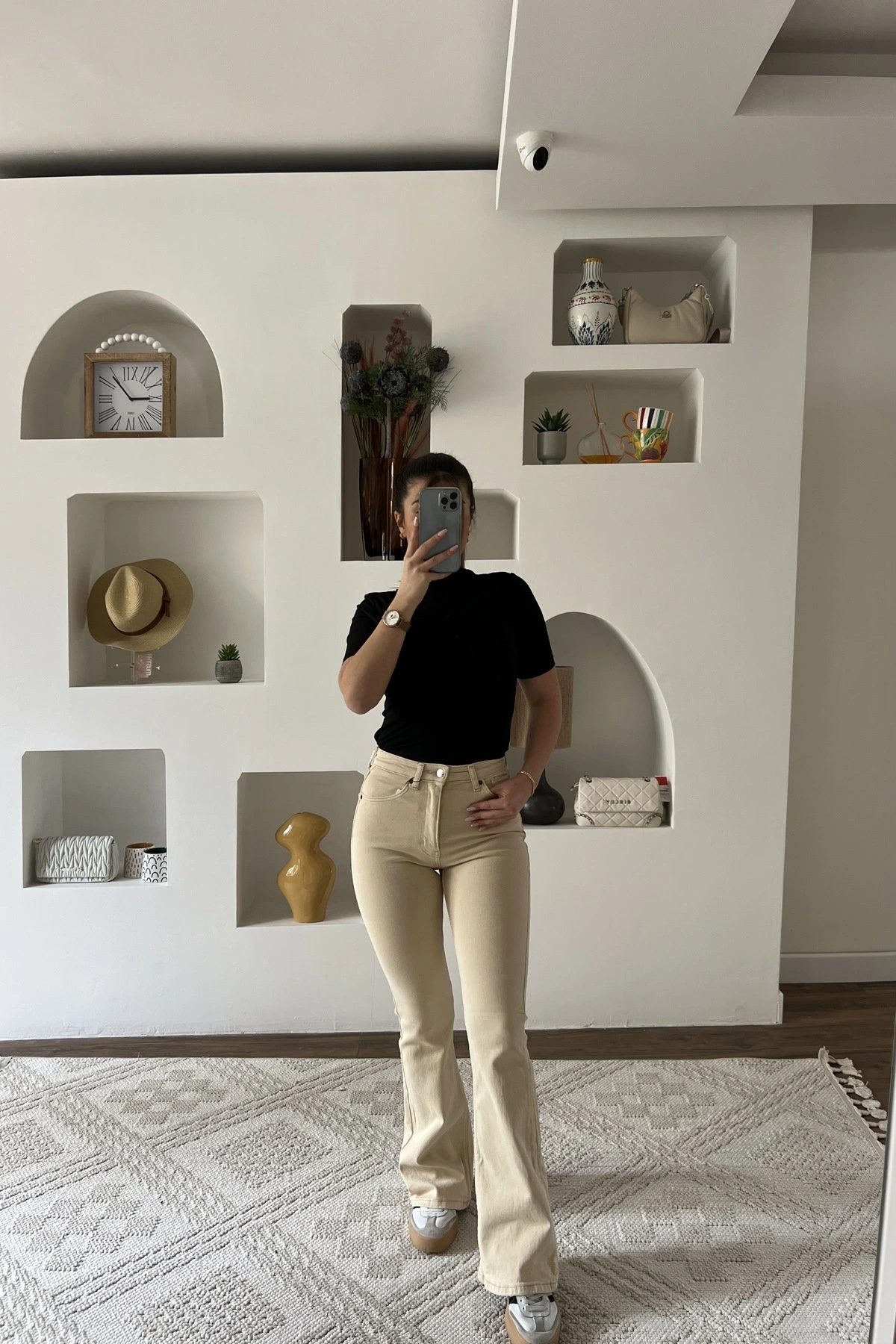 STRAIGHT YÜKSEK BEL KADİFE PANTOLON – BEJ