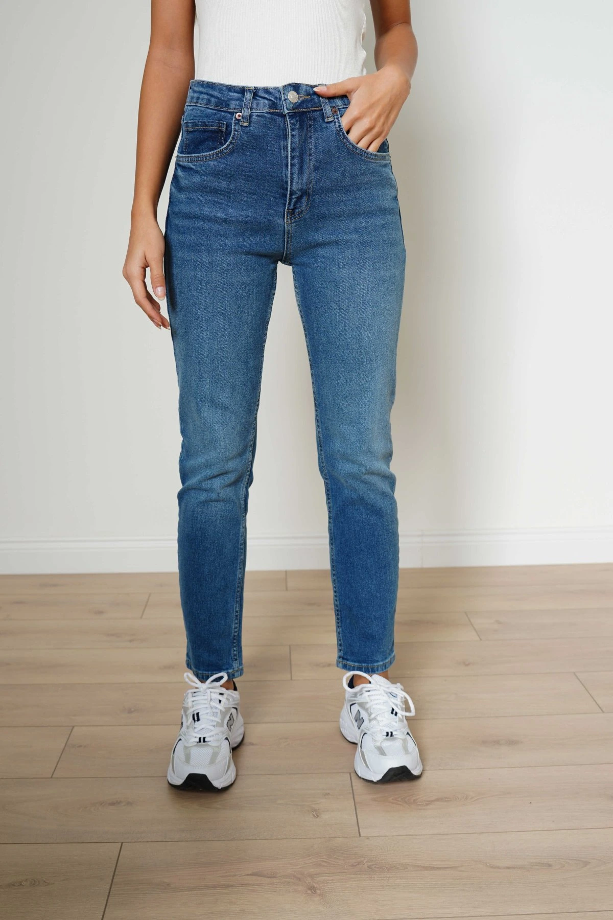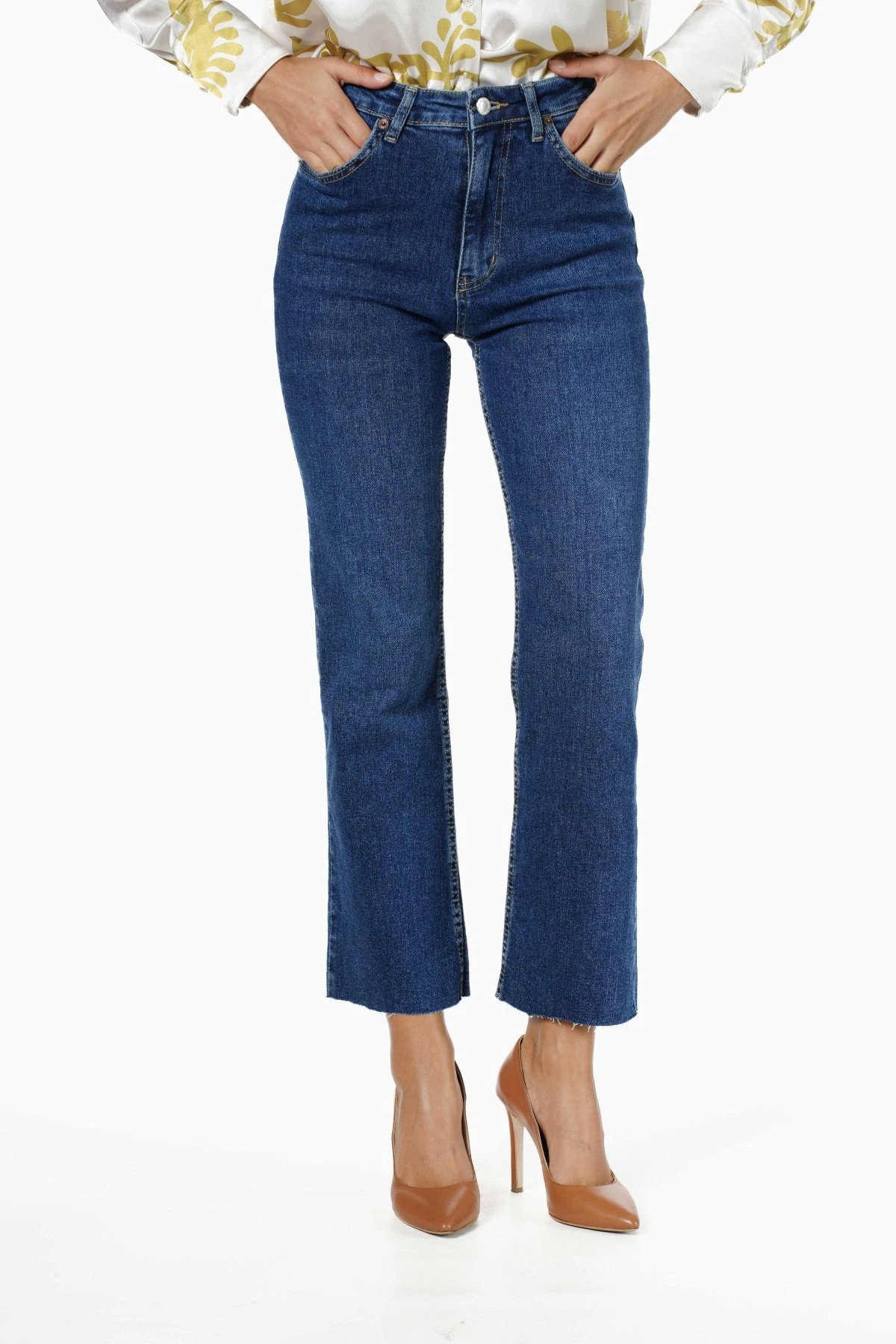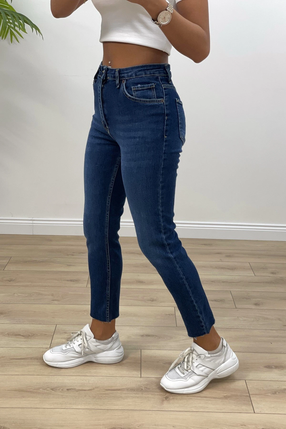 MARKA MODEL KESİK PAÇA LİKRALI MOM JEAN – KOYU MAVİ