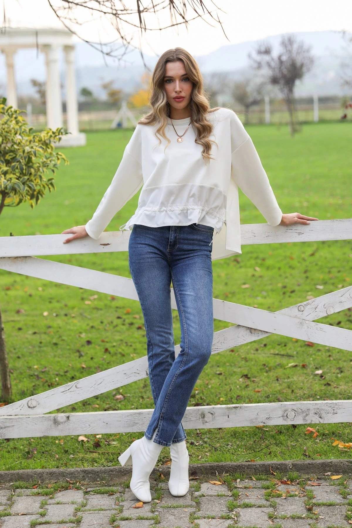 DÜĞMELİ İSPANYOL LİKRALI JEAN – KOYU MAVİ