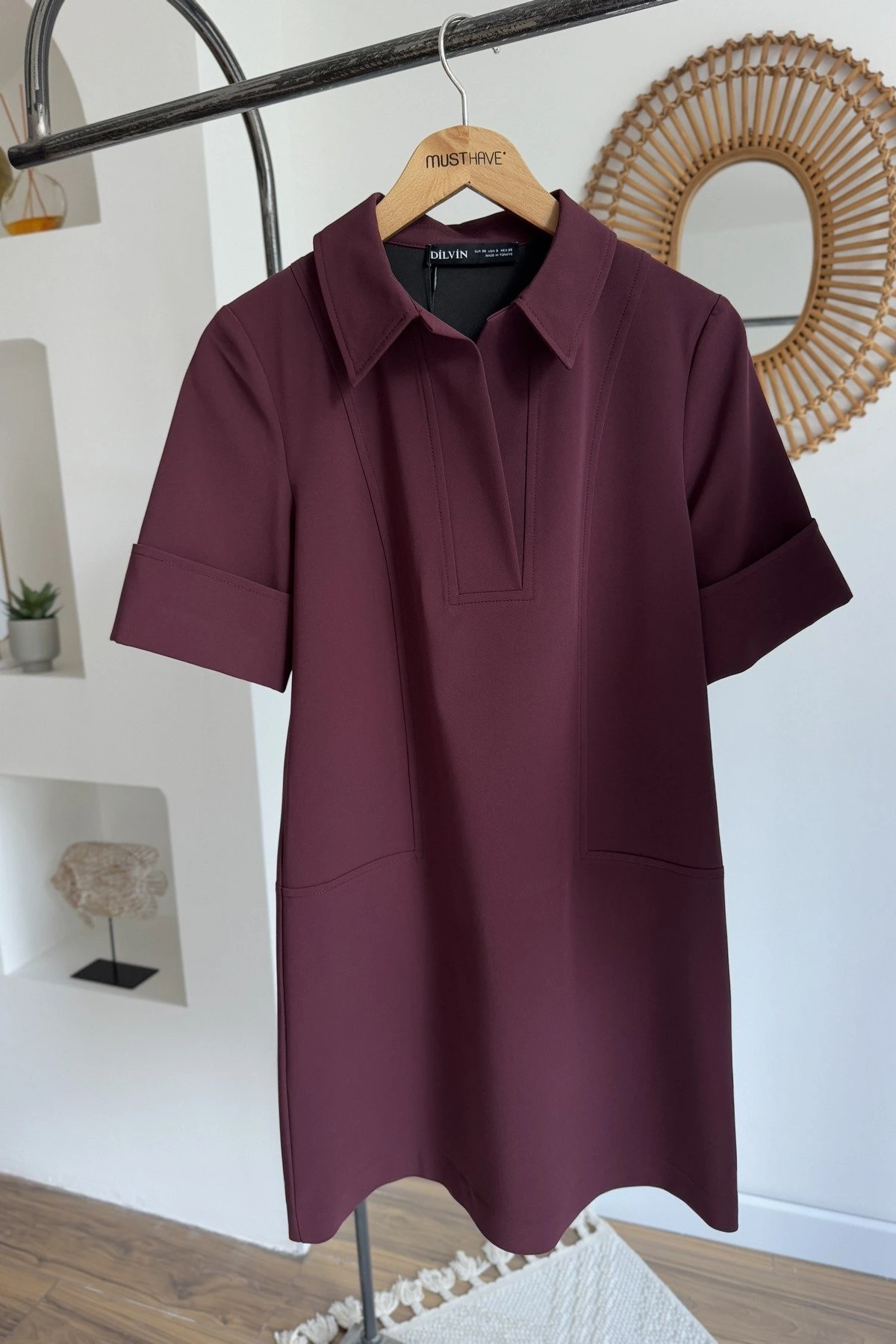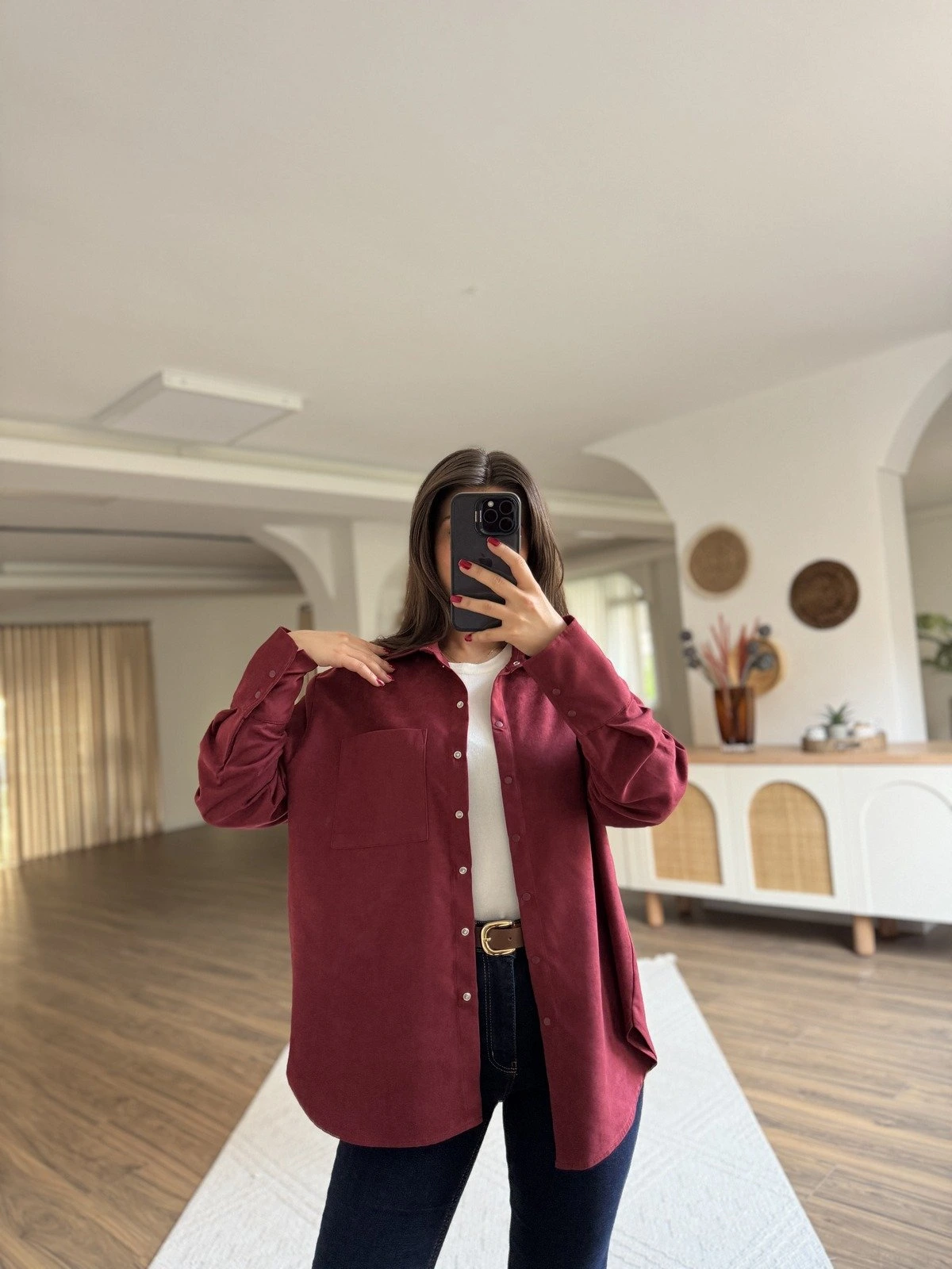 TEK CEP KUŞAKLI SÜET UZUN GÖMLEK – BORDO