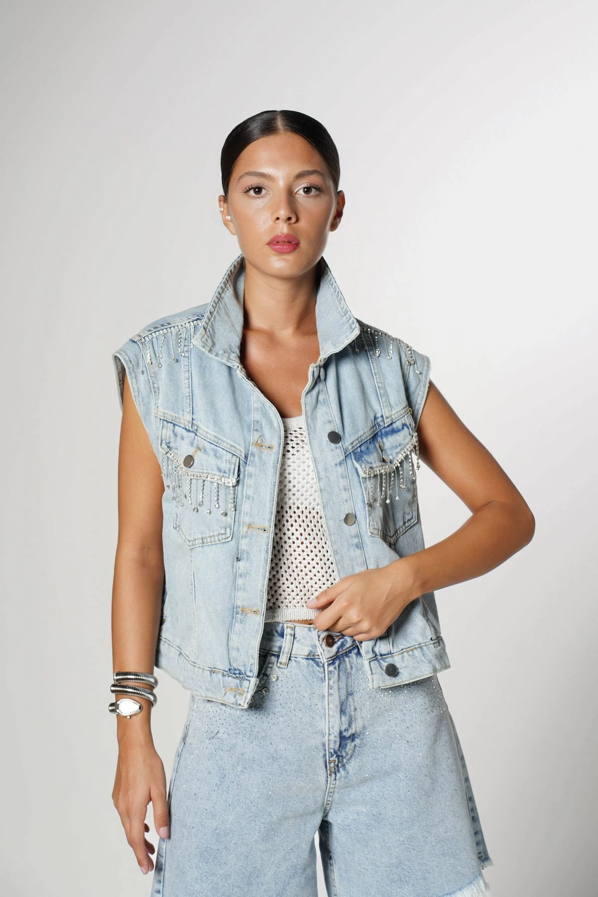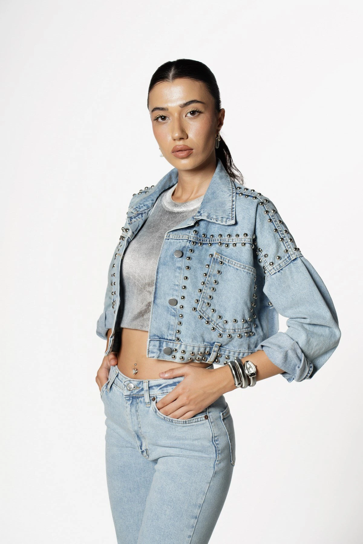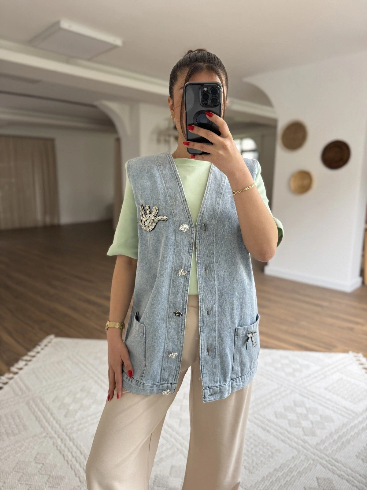 REKLAN KOL KAR YIKAMA KISA JEAN CEKET – MAVİ